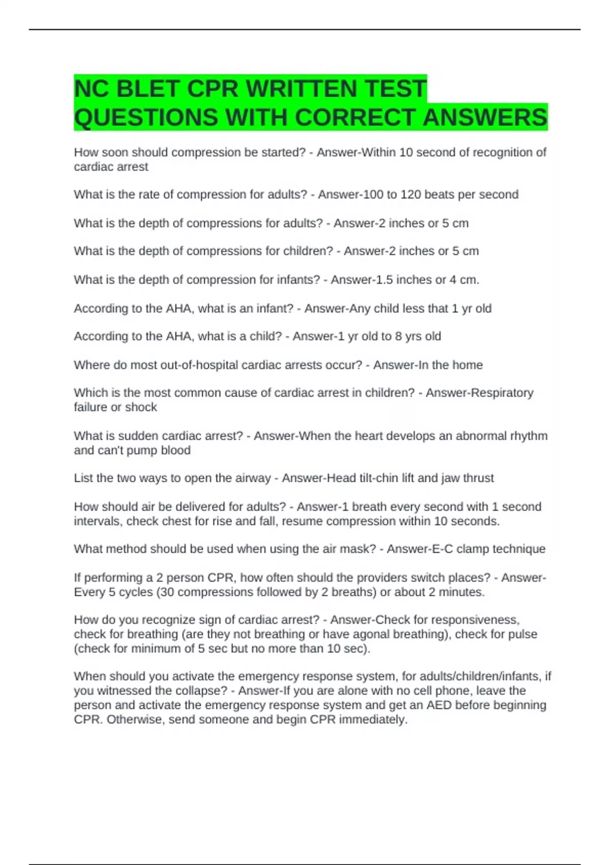 What is the depth of compression for infants? - Answer-1.5 inches or 4 cm.