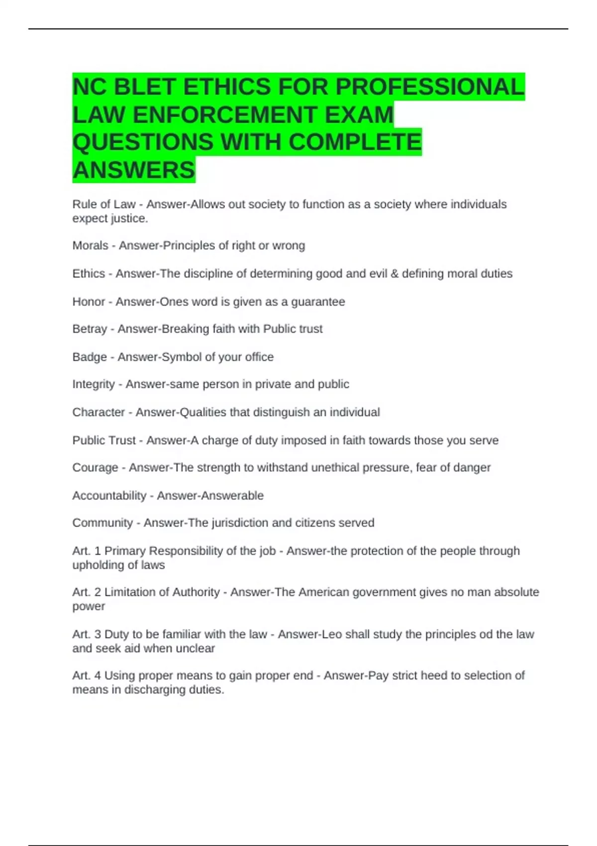Art. 1 Primary Responsibility of the job - Answer-the protection of the people through