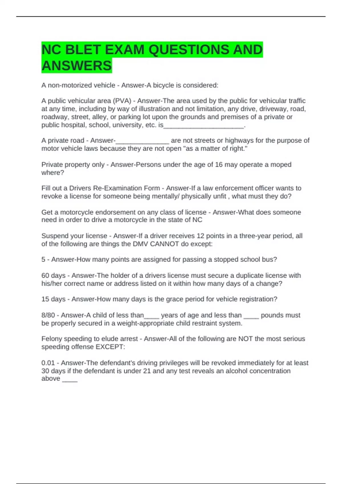 NC BLET EXAM QUESTIONS AND ANSWERS