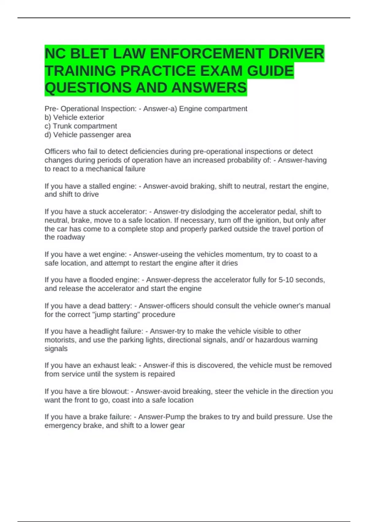 If you have an exhaust leak: - Answer-if this is discovered, the vehicle must be removed