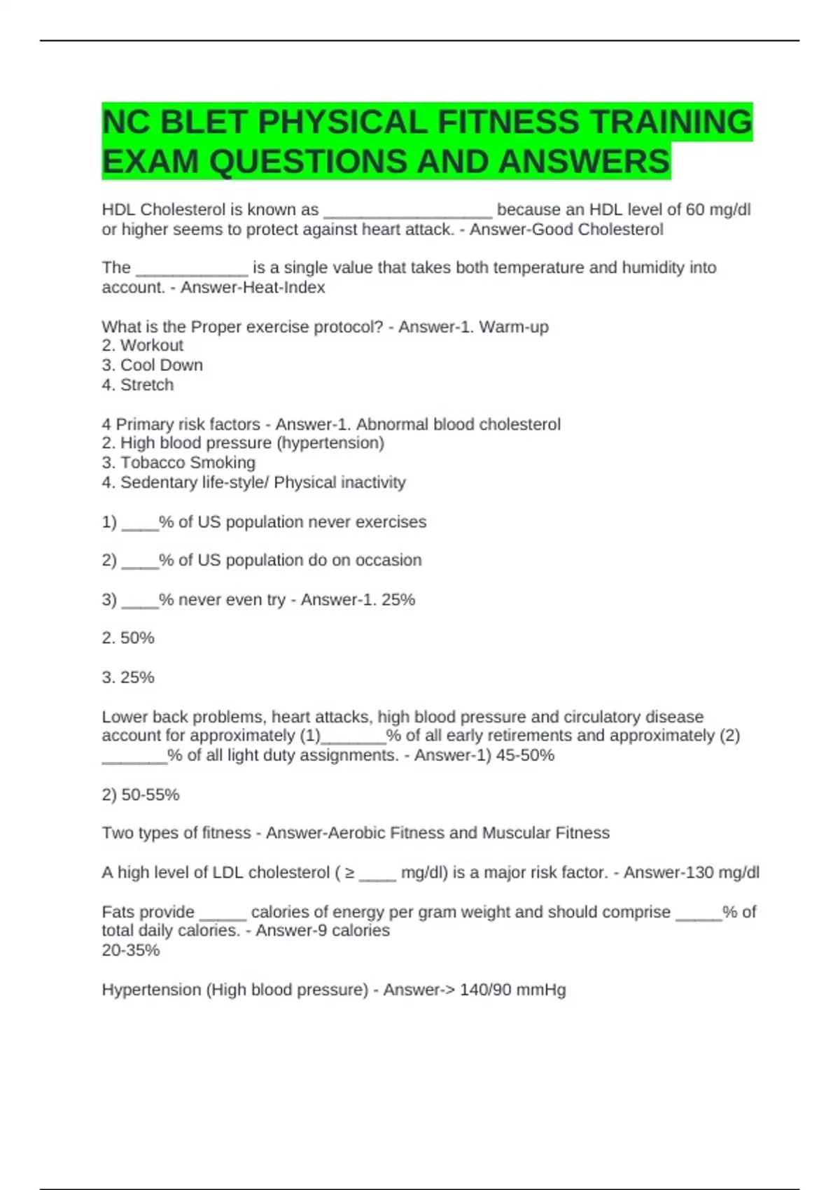 What is the Proper exercise protocol? - Answer-1. Warm-up