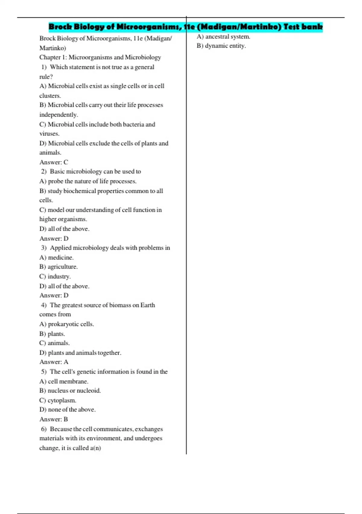, Brock Biology of Microorganisms, 11e (Madigan/Martinko) Test bank