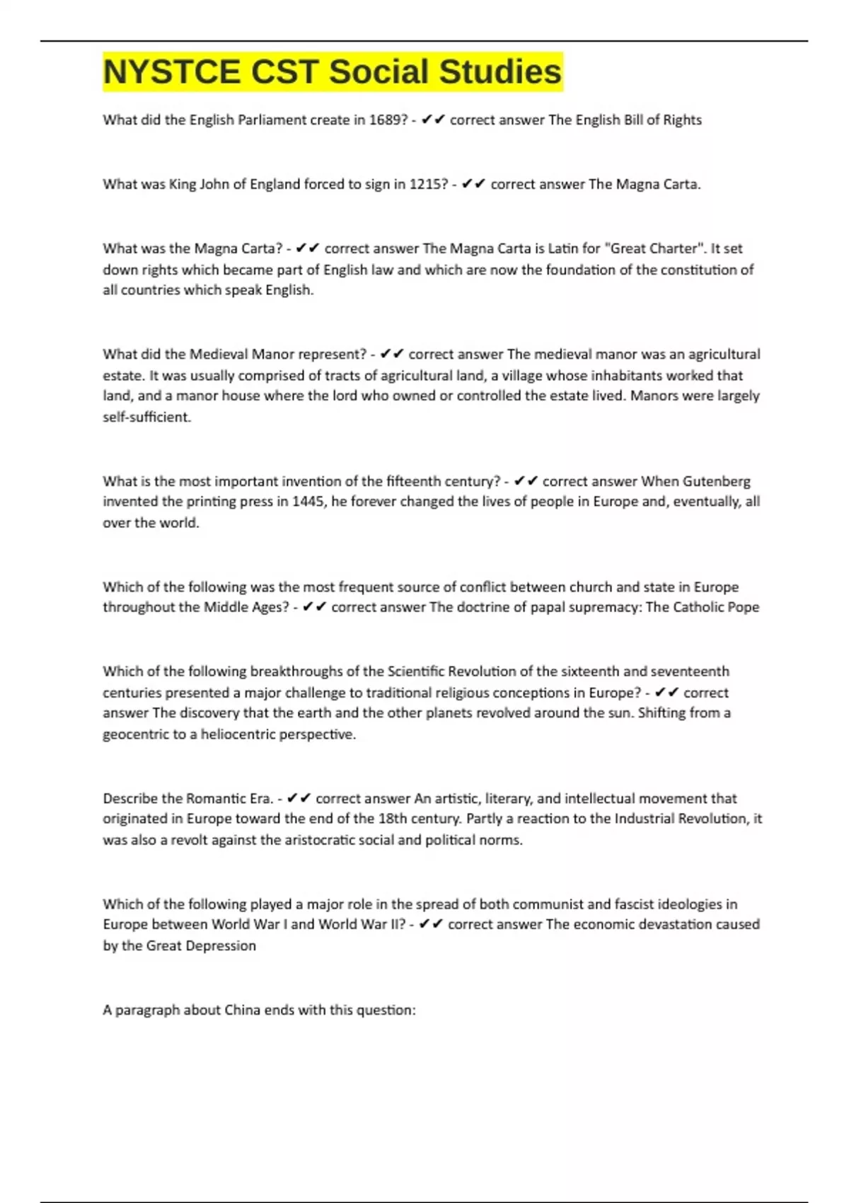 , NYSTCE CST Social Studies