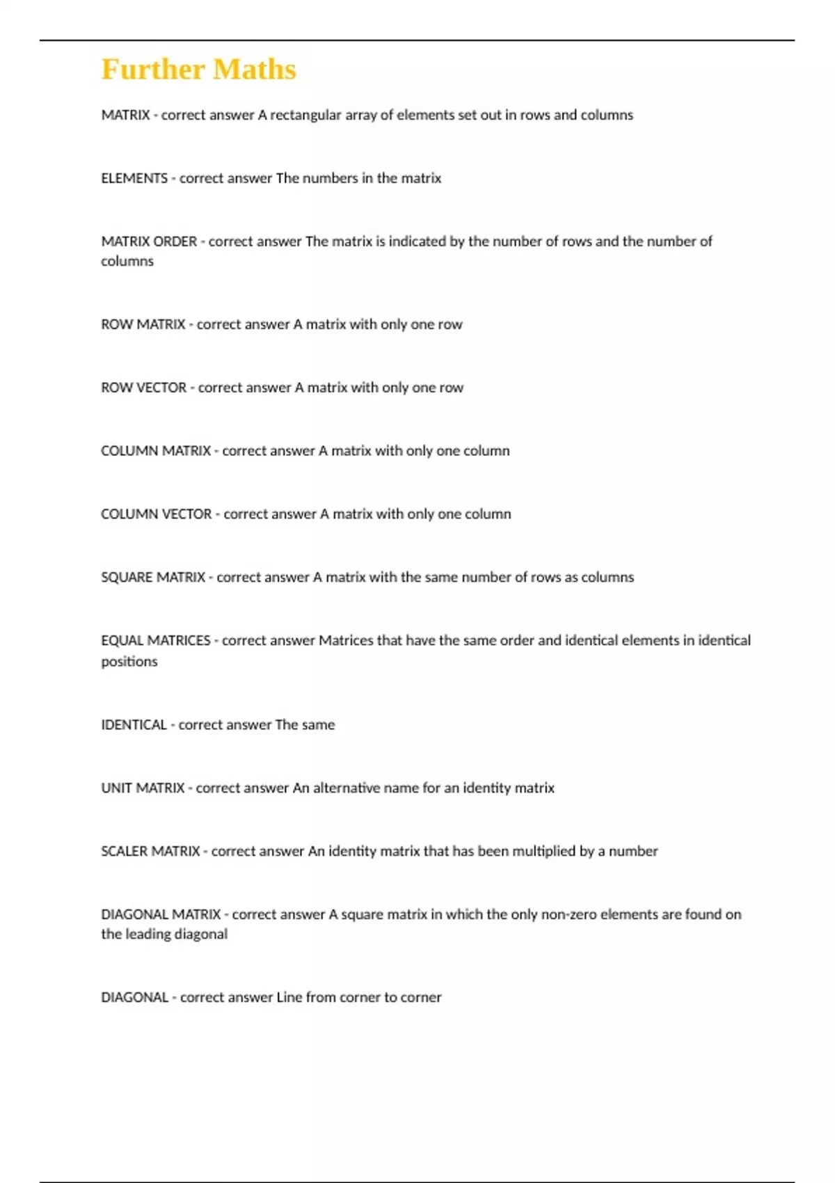 UNIT MATRIX - correct answer An alternative name for an identity matrix