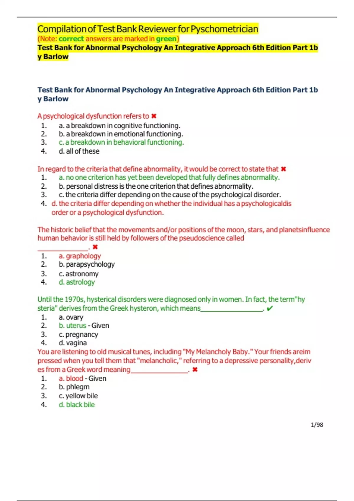 , Compilation of Test Bank Reviewer for Pyschometrician