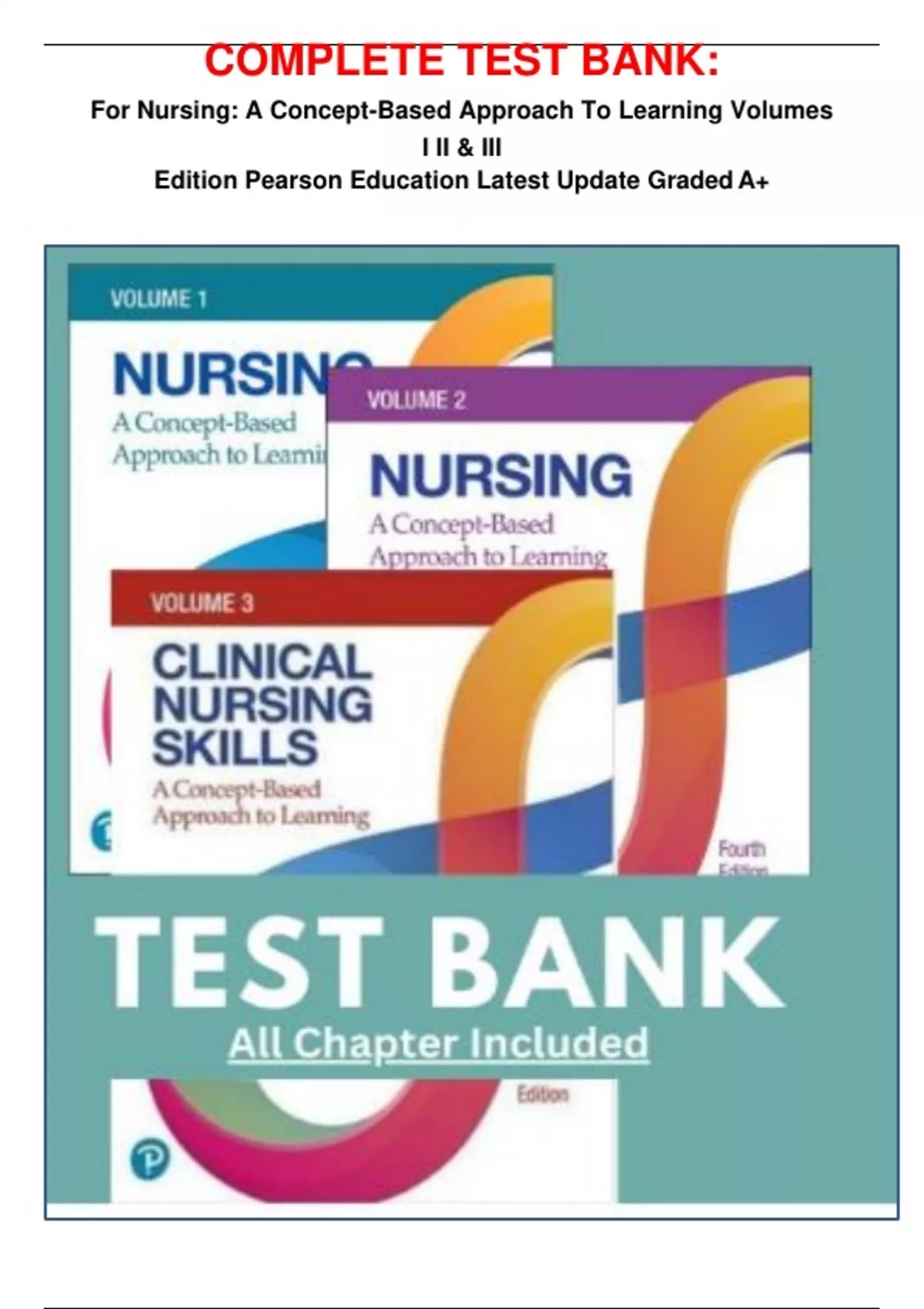 COMPLETE TEST BANK: For Nursing: A Concept-Based Approach To Learning Volumes I II & III Edition Pearson Education Latest Update Graded A+