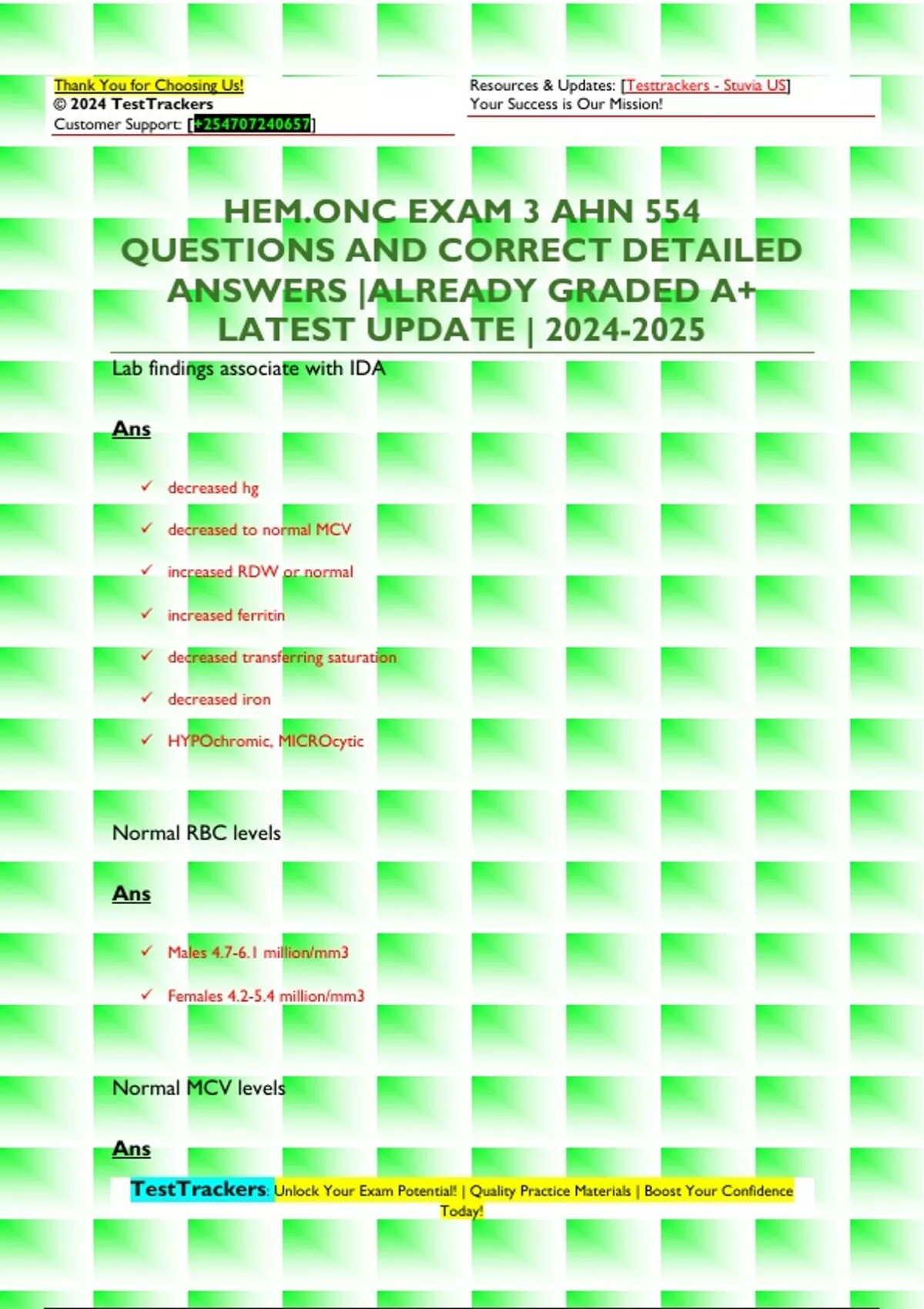HEM.ONC EXAM 3 AHN 554 QUESTIONS AND CORRECT DETAILED ANSWERS |ALREADY GRADED A+ LATEST UPDATE |