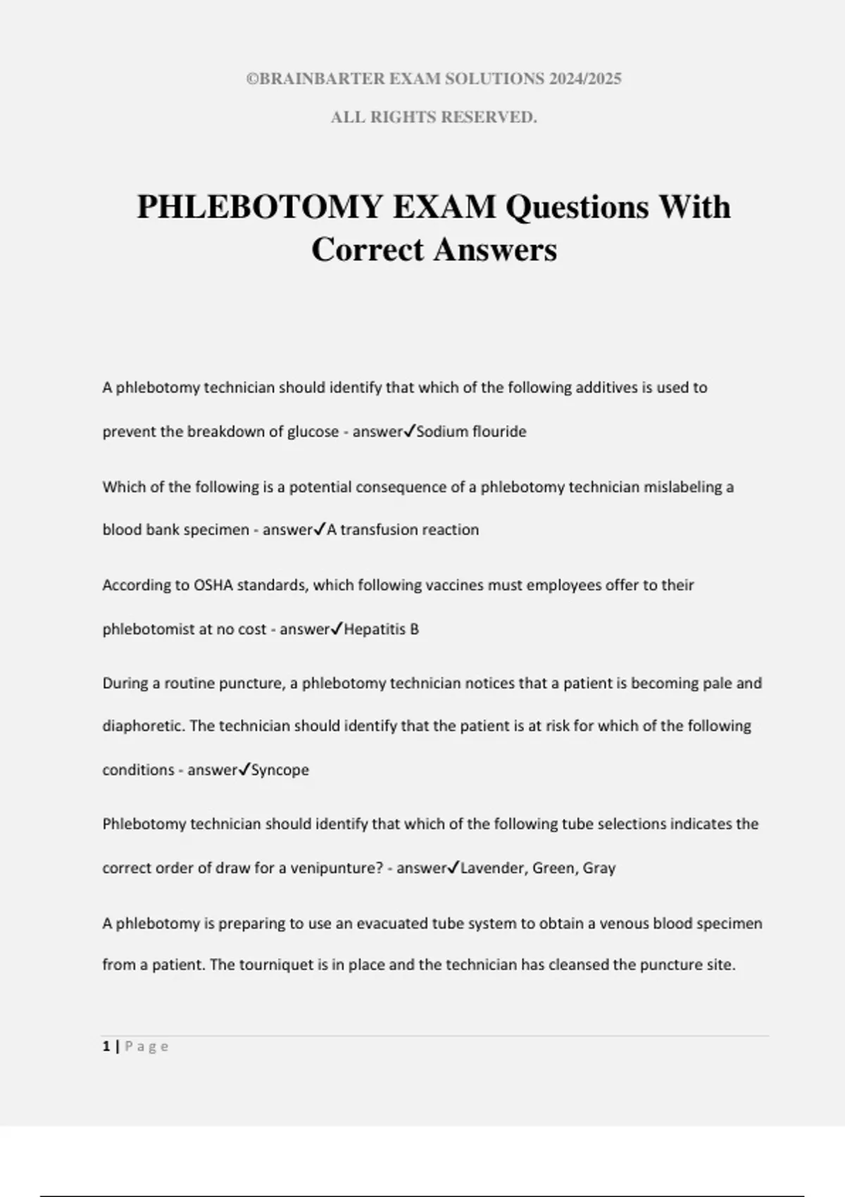 PHLEBOTOMY EXAM Questions With
