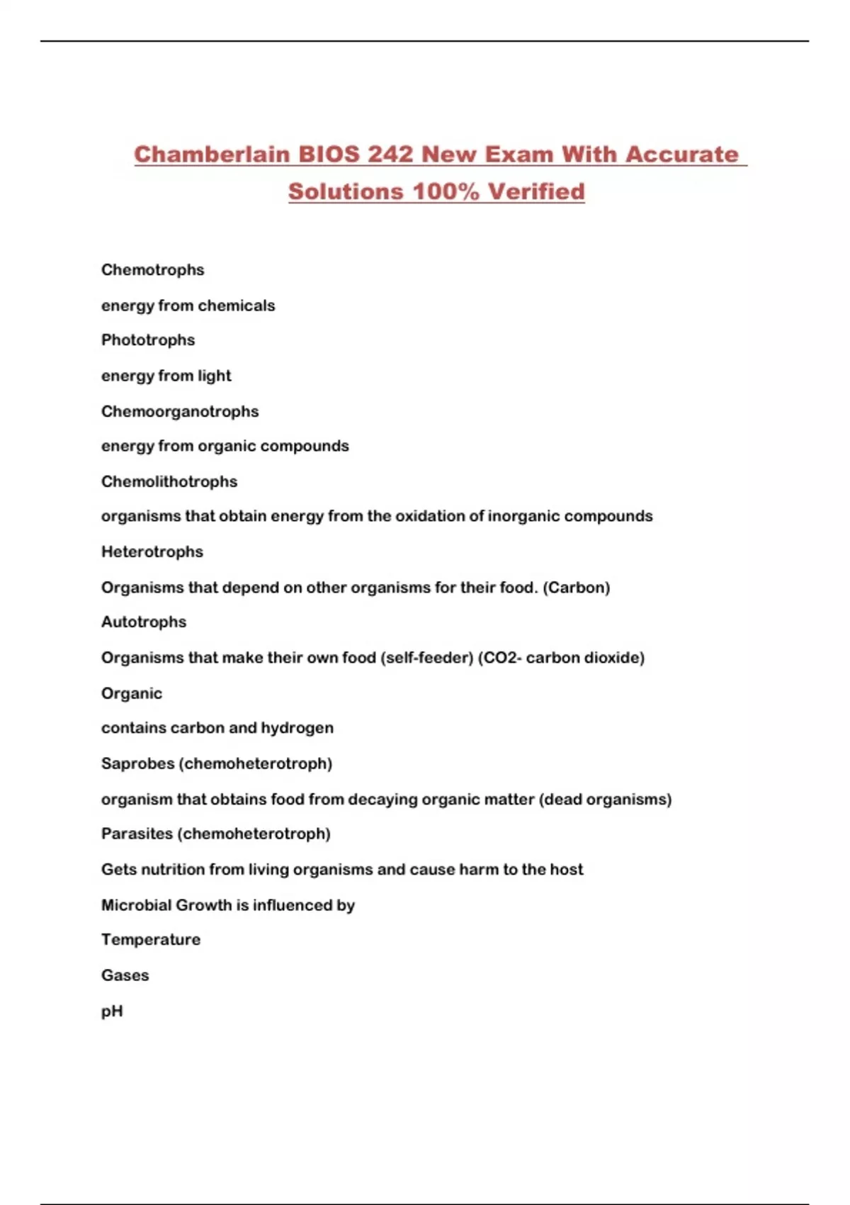 Chamberlain BIOS 242 New Exam With Accurate