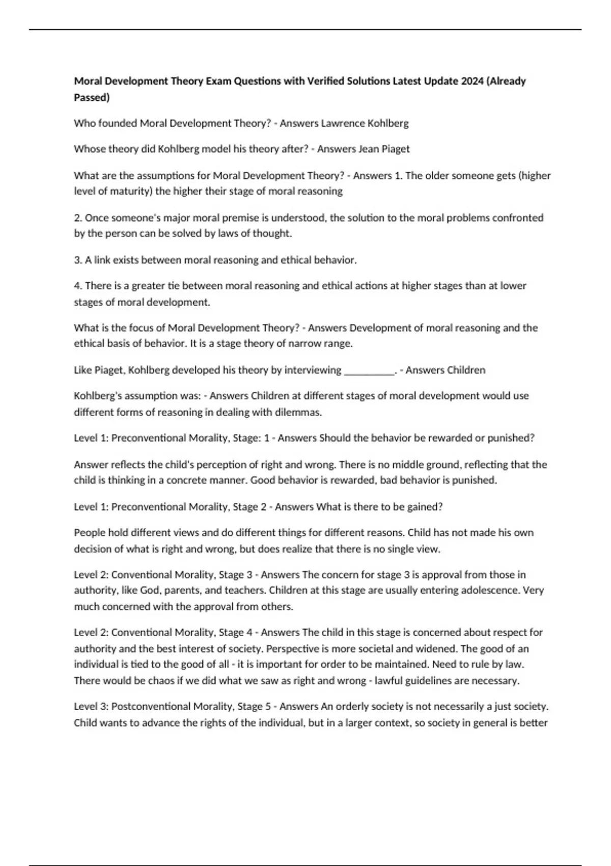 What are the assumptions for Moral Development Theory? - Answers 1. The older someone gets (higher