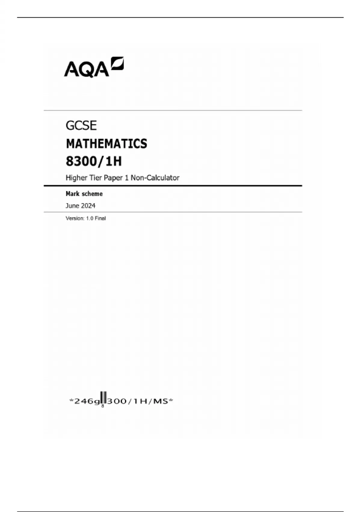 GCSE AQA MAY 2024 HIGHER TIER MATHEMATICS PAPER 1 MARK SCHEME ( NON-CALCULATOR) 2024 EXAM MARK SCHEME