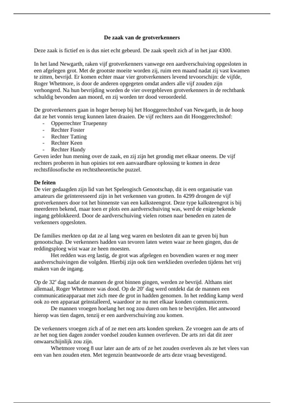 verhongerd. Na hun bevrijding worden de vier overgebleven grotverkenners in de rechtbank