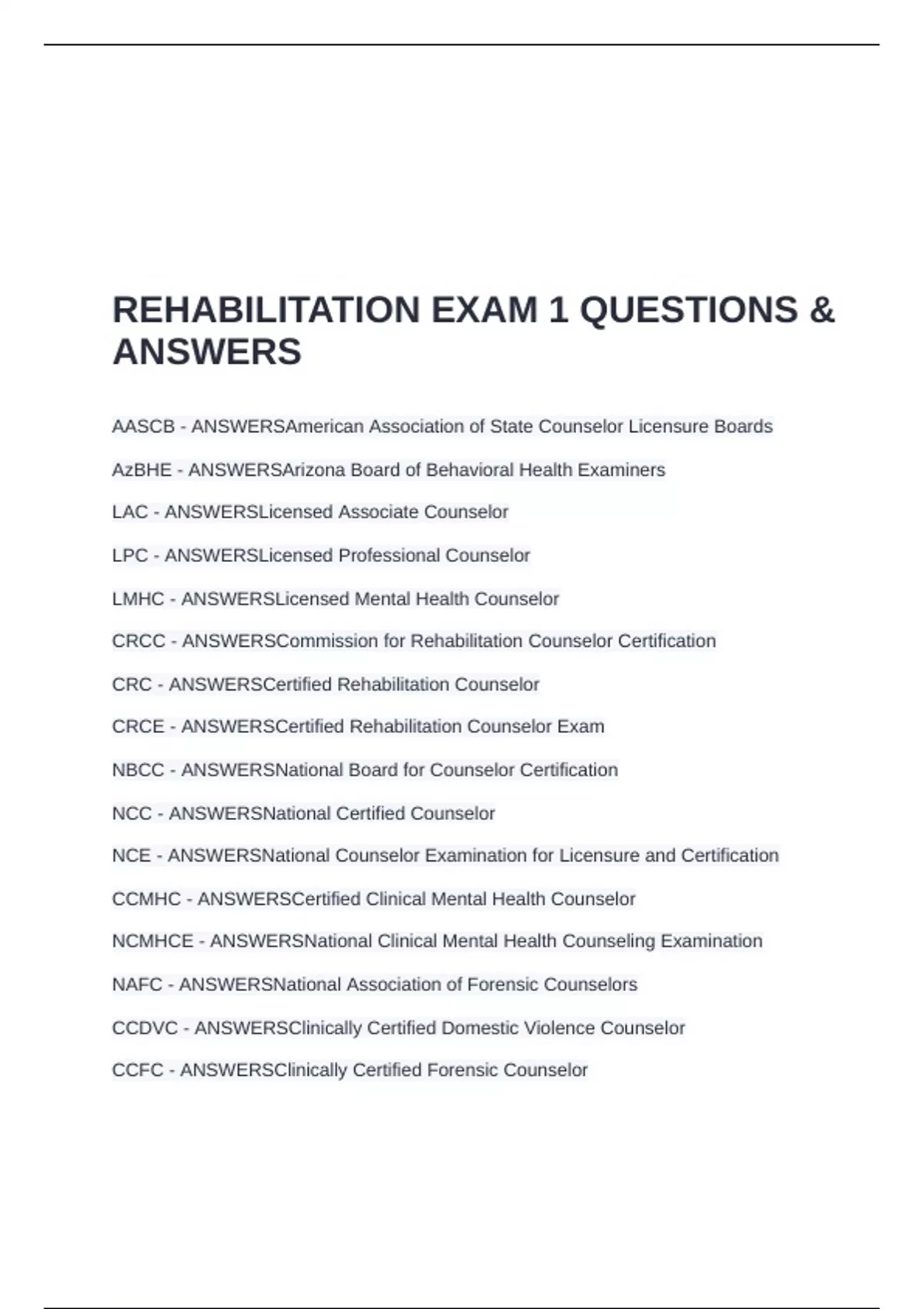 CRCE - ANSWERSCertified Rehabilitation Counselor Exam