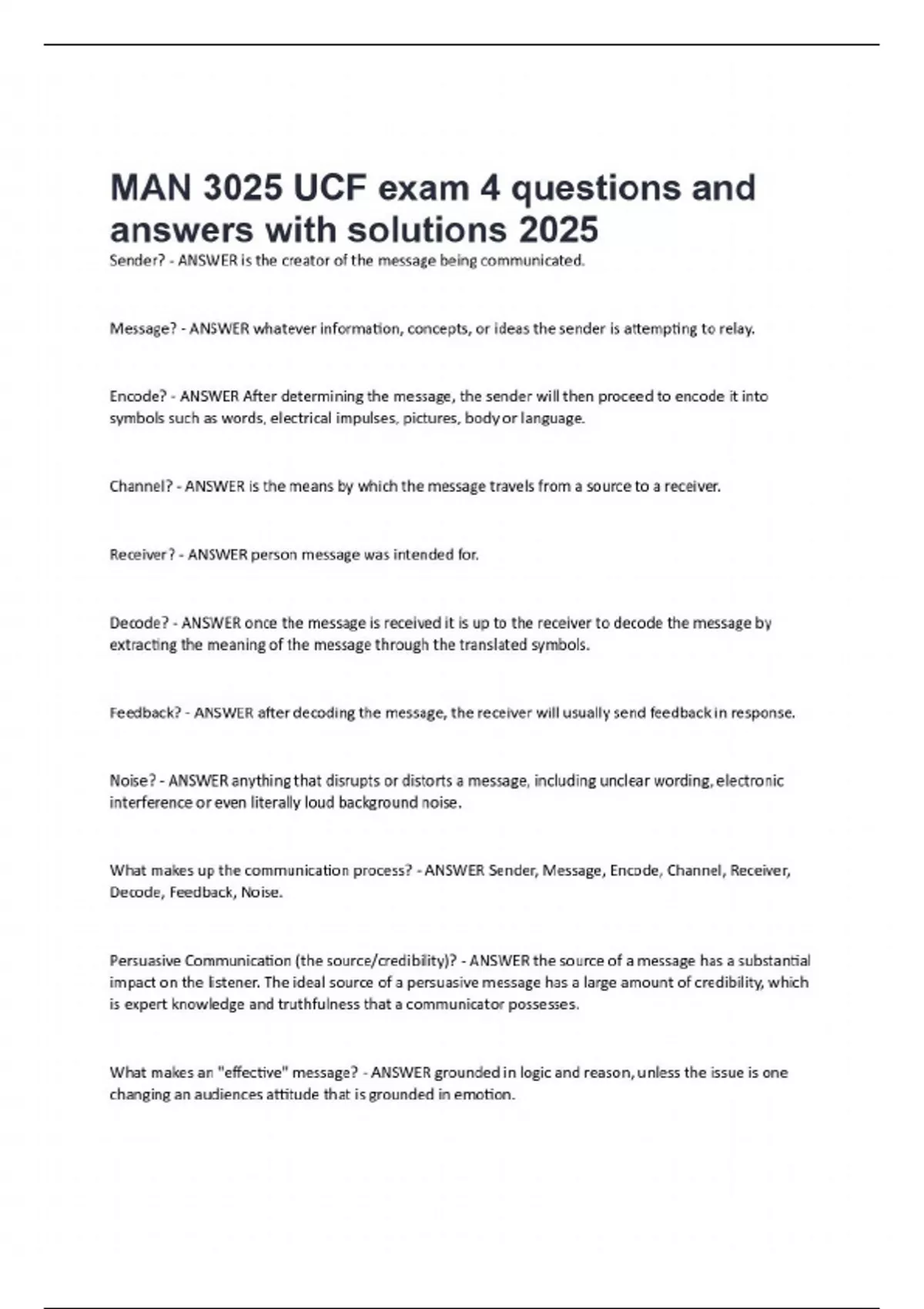 MAN 3025 UCF exam 4 questions and answers with solutions 2025