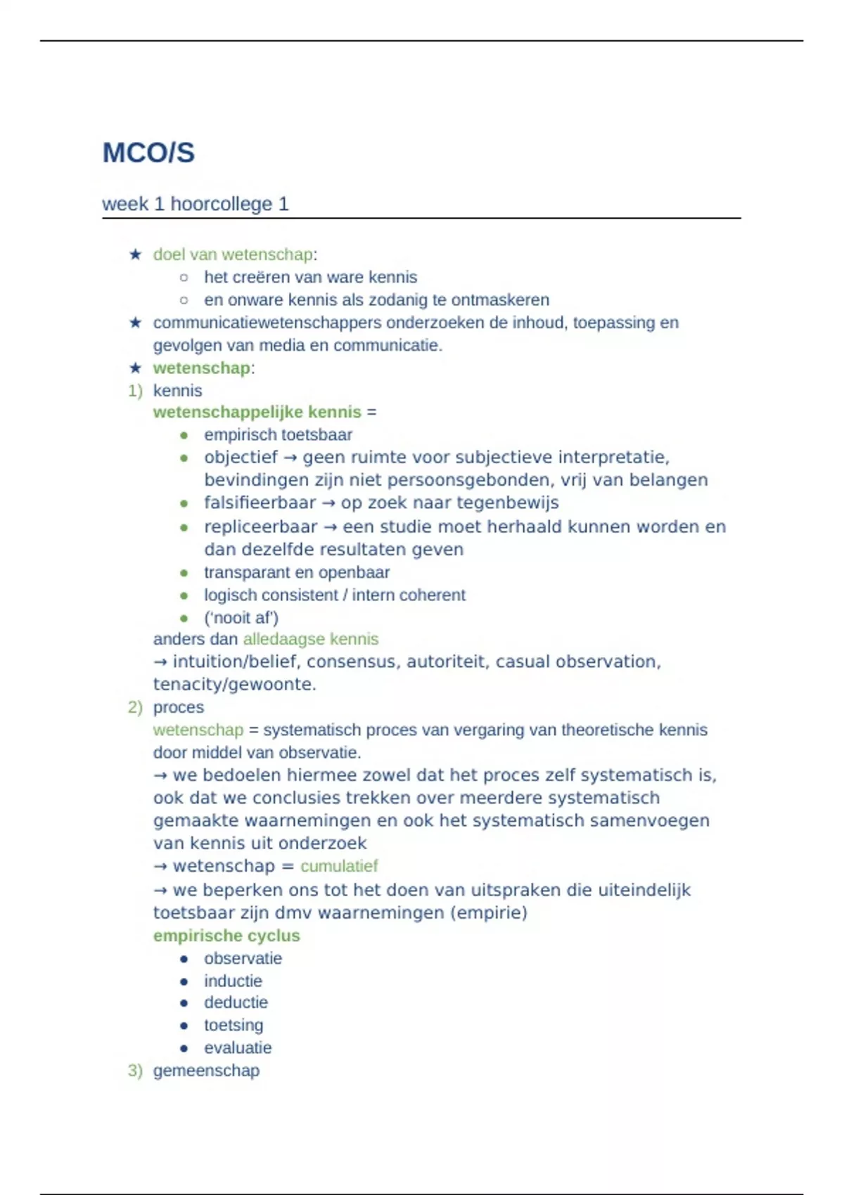 Samenvatting van hoorcolleges voor het eerste deeltentamen van het vak MCOS