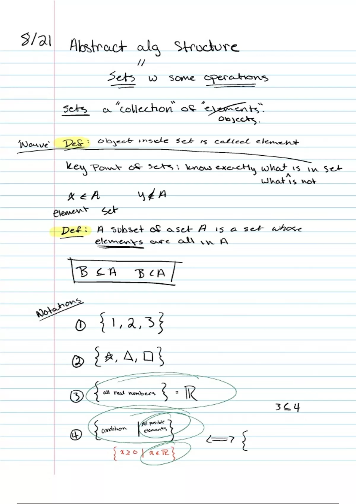 Def A subset of a set A is a set whose