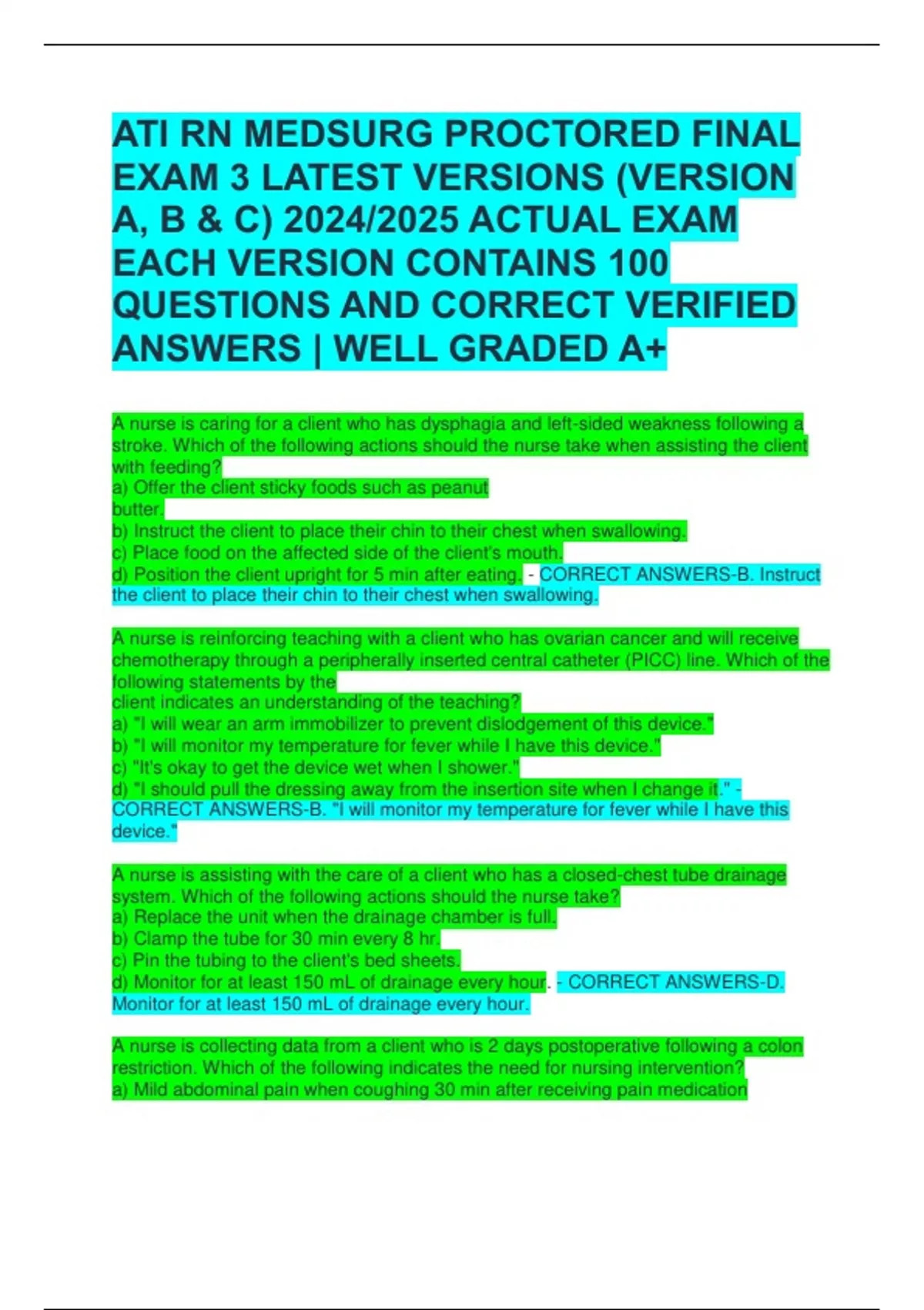 EXAM 3 LATEST VERSIONS (VERSION