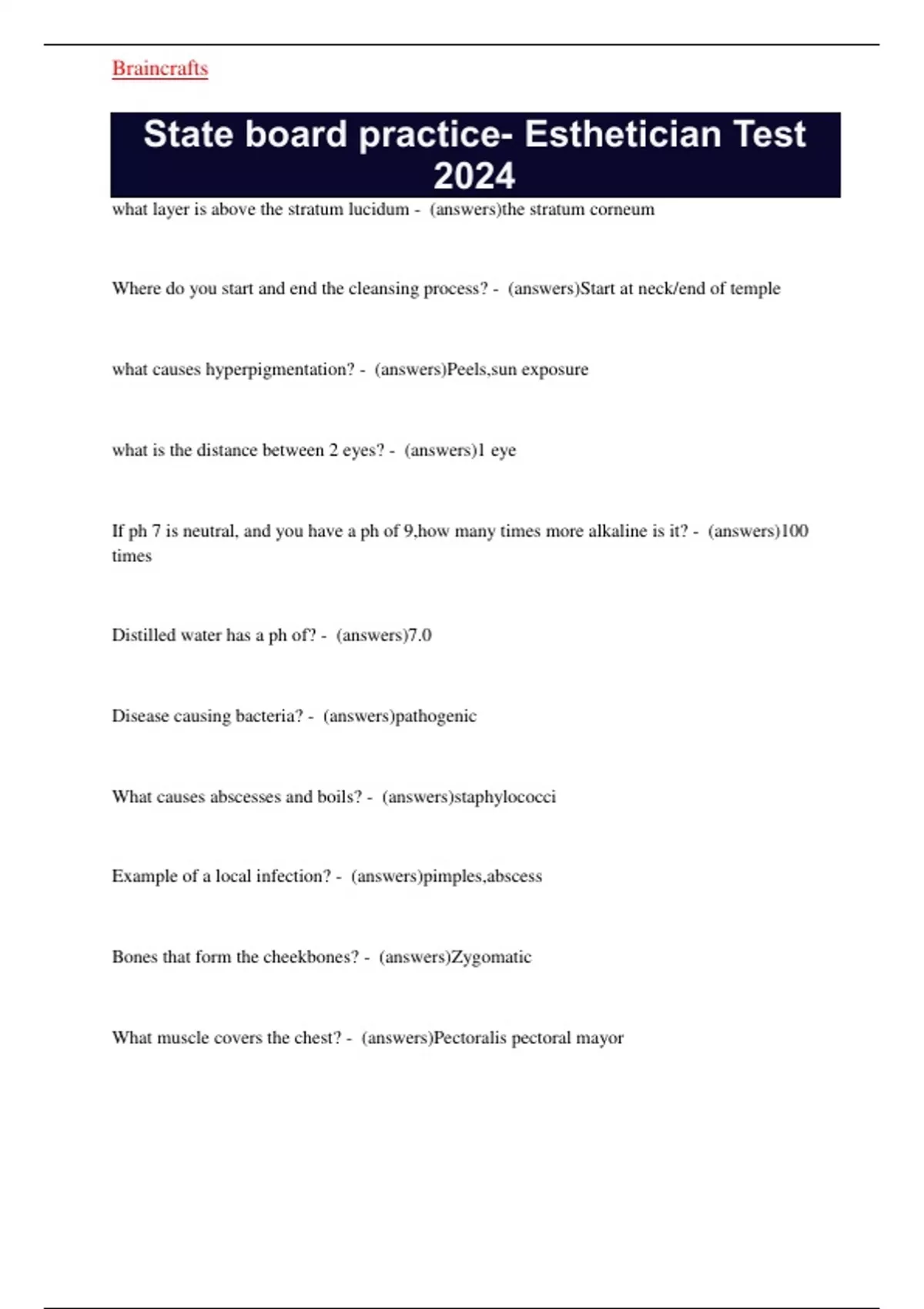State board practice- Esthetician Test
