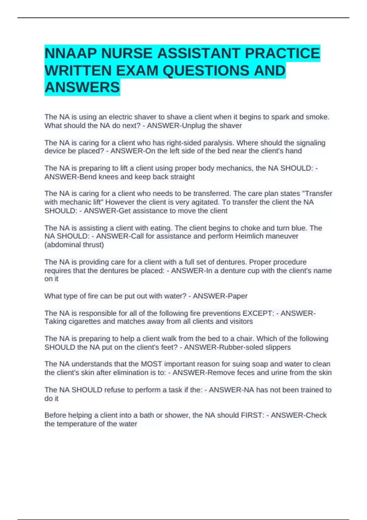 nearest outlet. The FIRST thing the NA should do is: - ANSWER-See if any changes