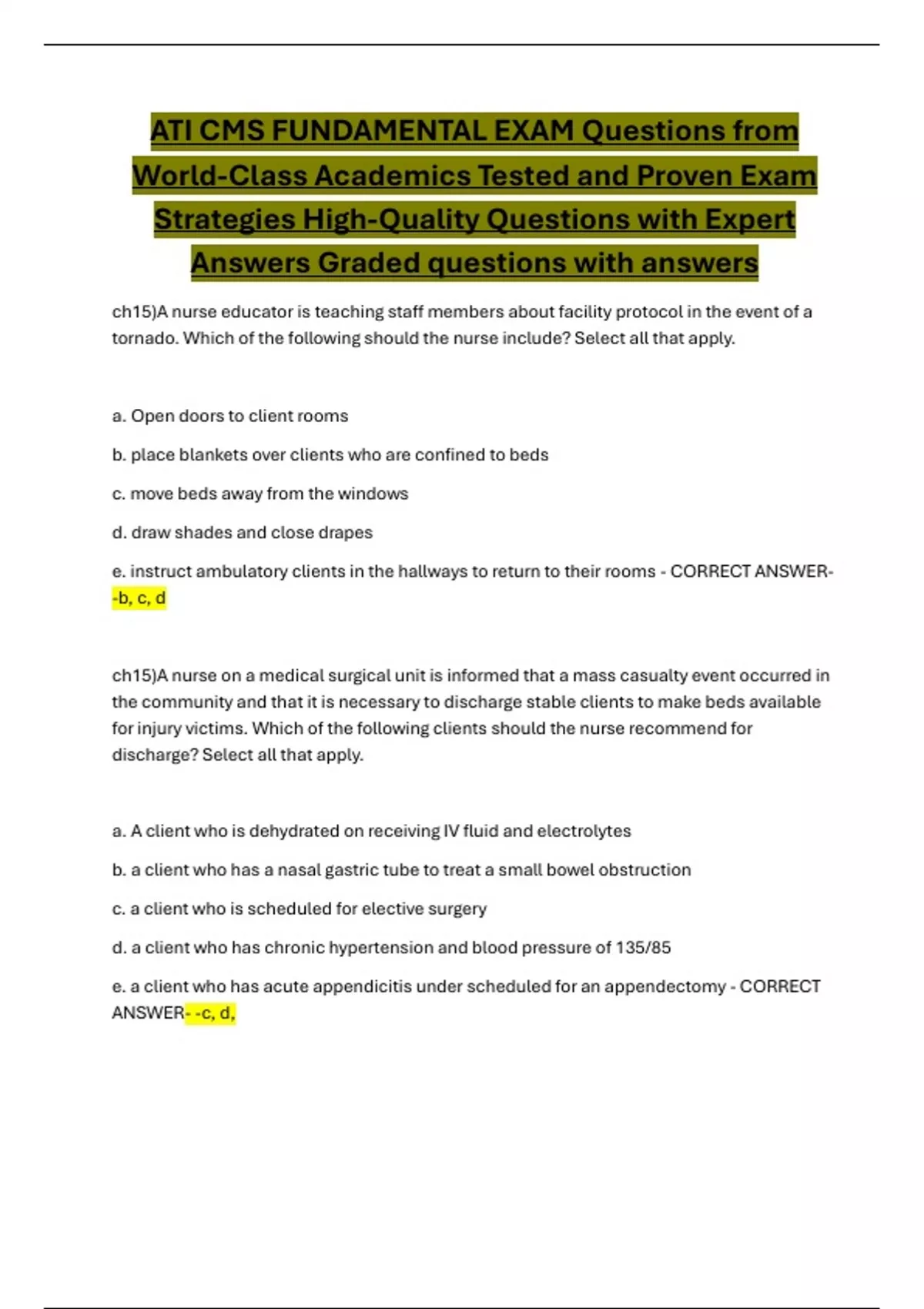 e. instruct ambulatory clients in the hallways to return to their rooms - CORRECT ANSWER-