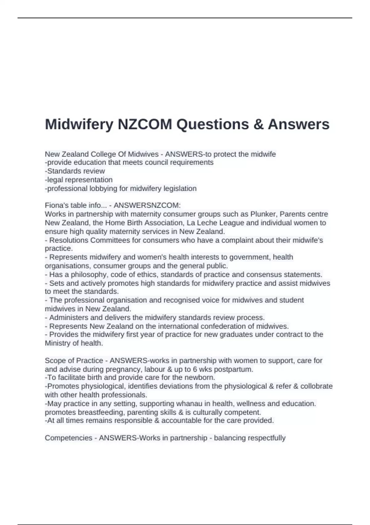 New Zealand College Of Midwives - ANSWERS-to protect the midwife