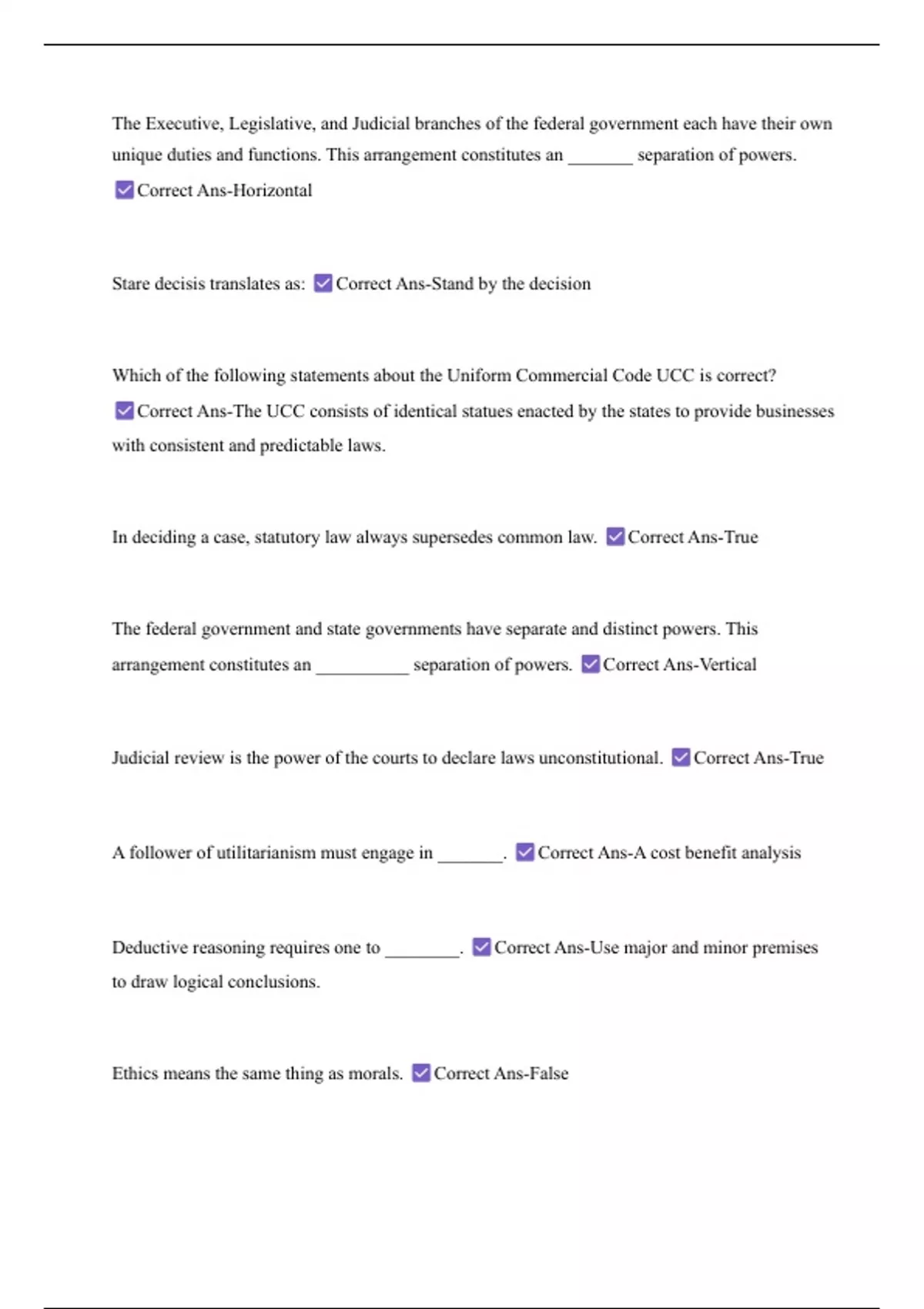 arrangement constitutes an __________ separation of powers. Correct Ans-Vertical