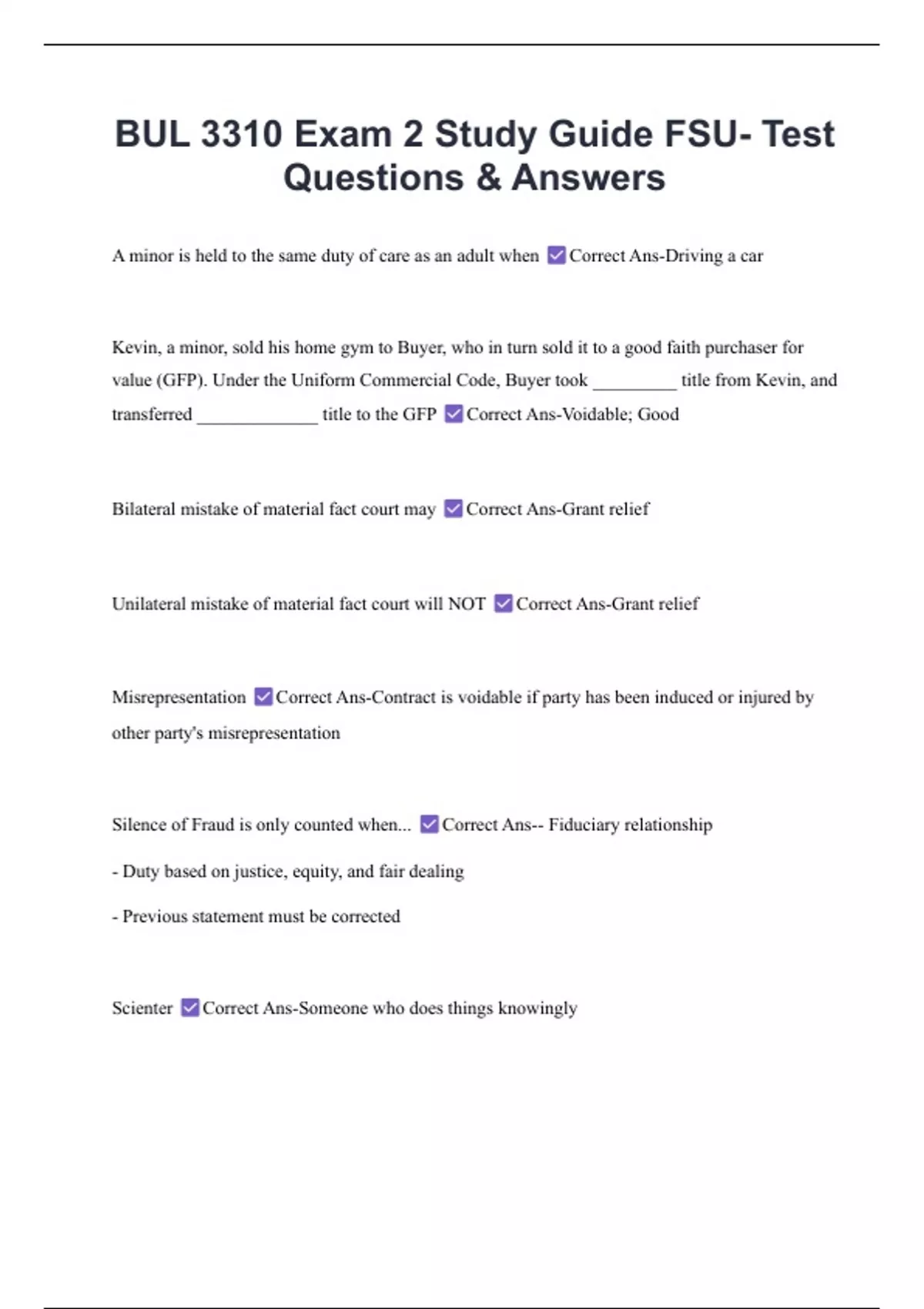 BUL 3310 Exam 2 Study Guide FSU- Test Questions & Answers