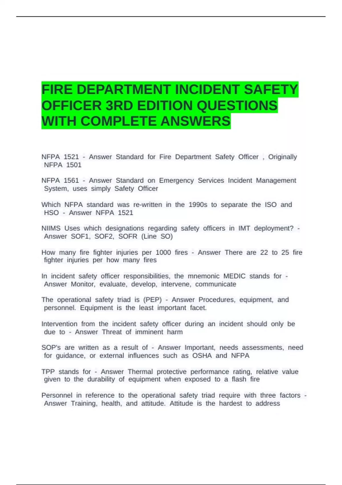 NFPA tt1521 tt- ttAnswer ttStandard ttfor ttFire ttDepartment ttSafety ttOfficer tt, ttOriginally
