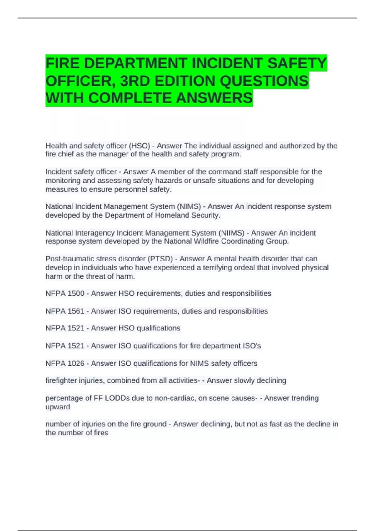 NFPA 1521 - Answer ISO qualifications for fire department ISO's
