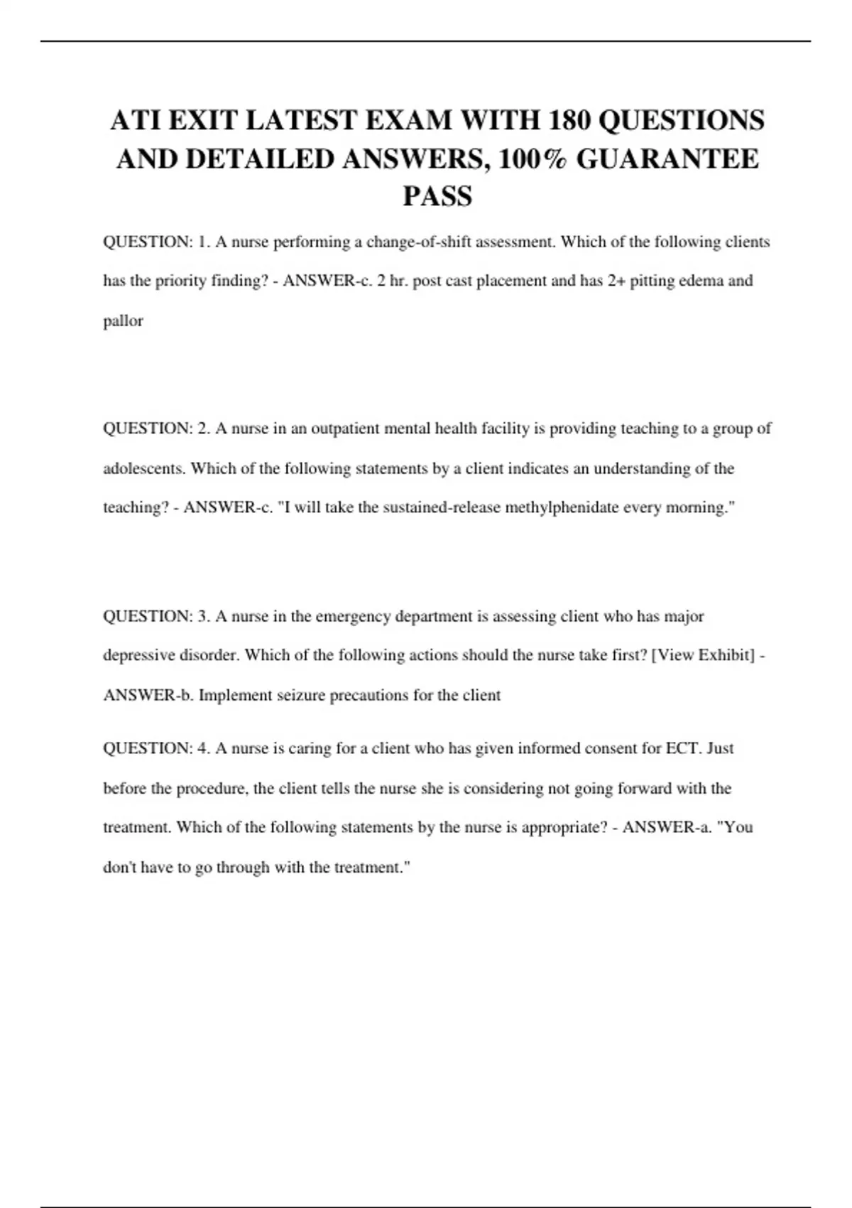 ATI EXIT LATEST EXAM WITH 180 QUESTIONS