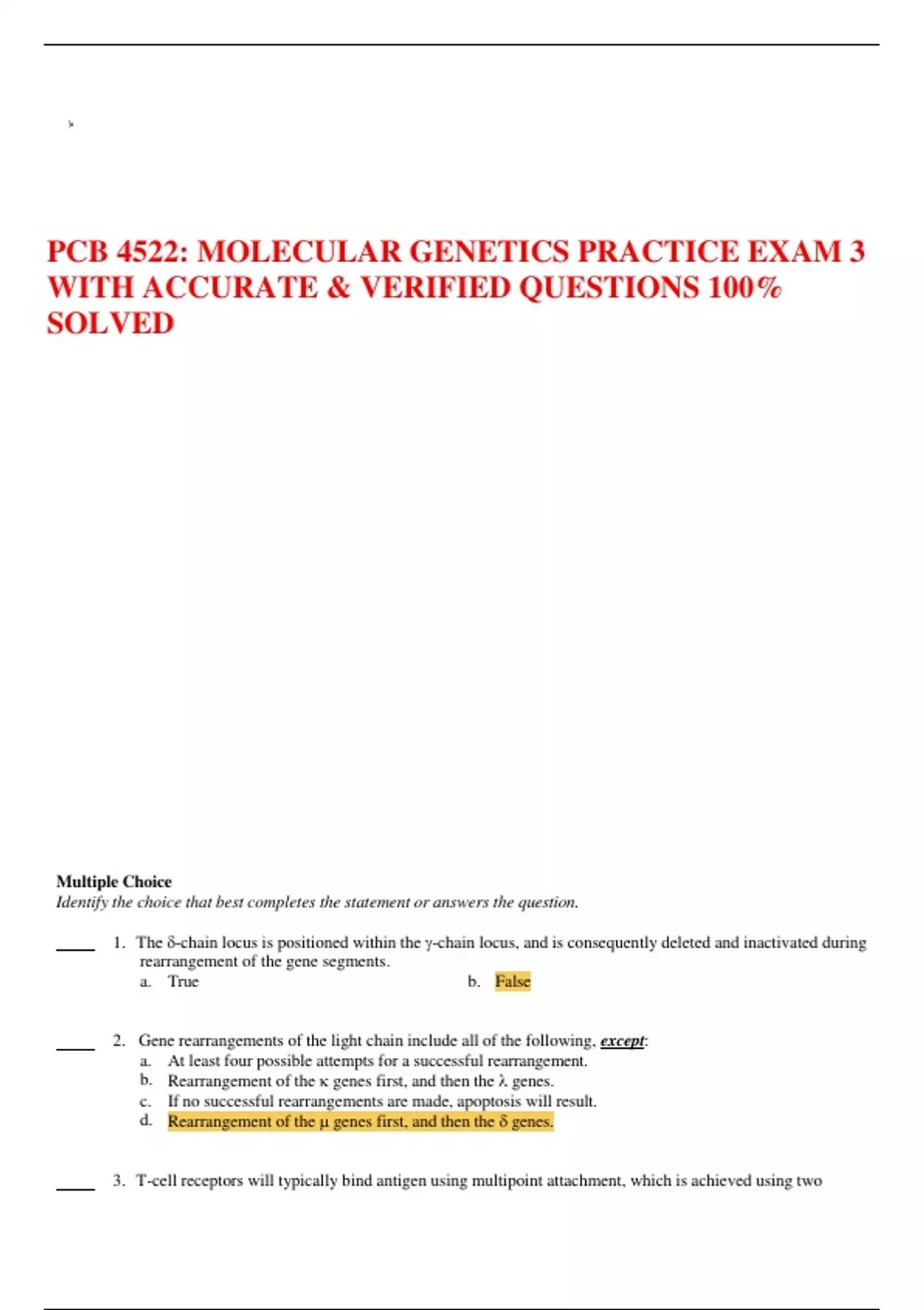 PCB 4522: MOLECULAR GENETICS PRACTICE EXAM 3