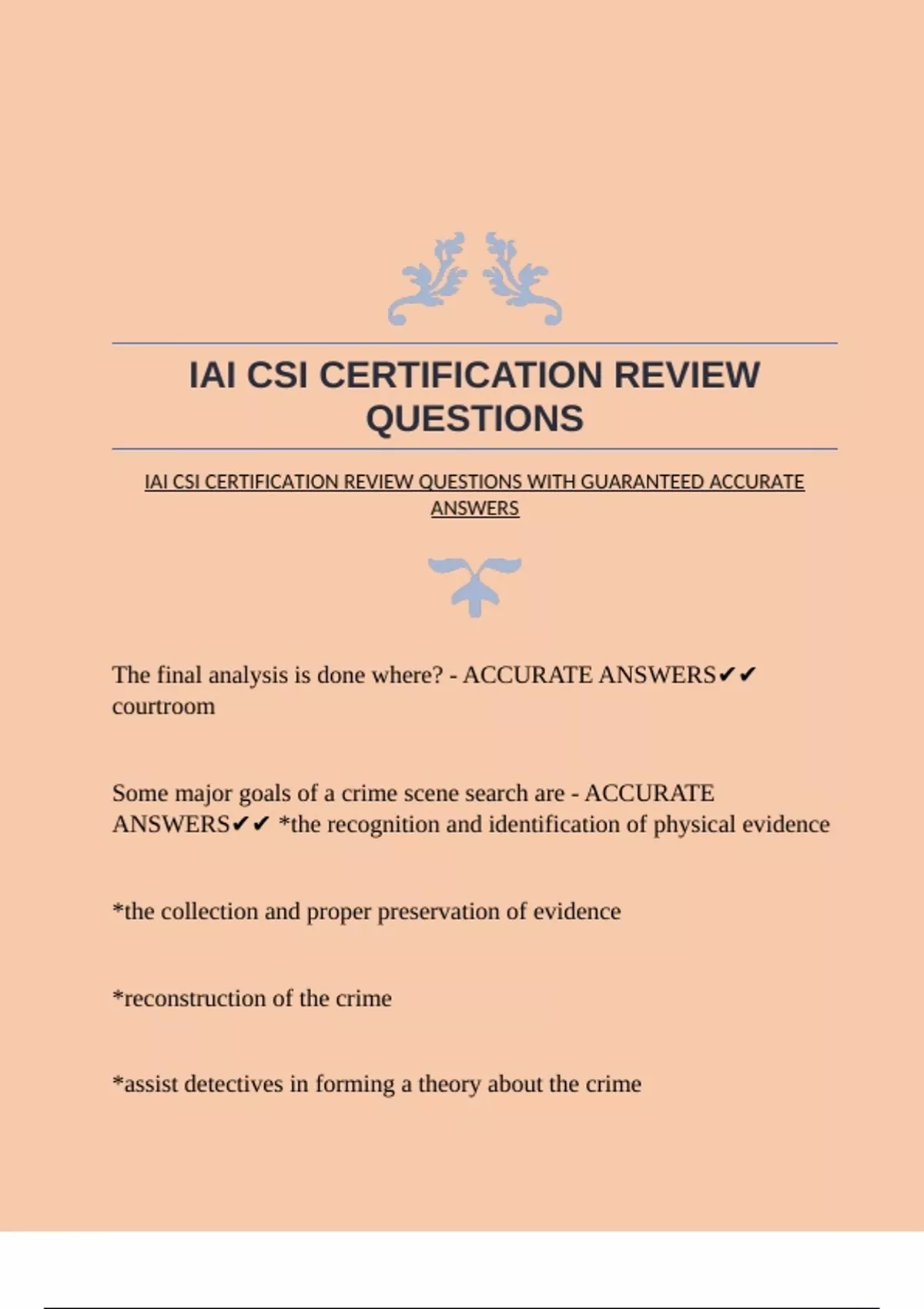 IAI CSI CERTIFICATION REVIEW QUESTIONS WITH GUARANTEED ACCURATE