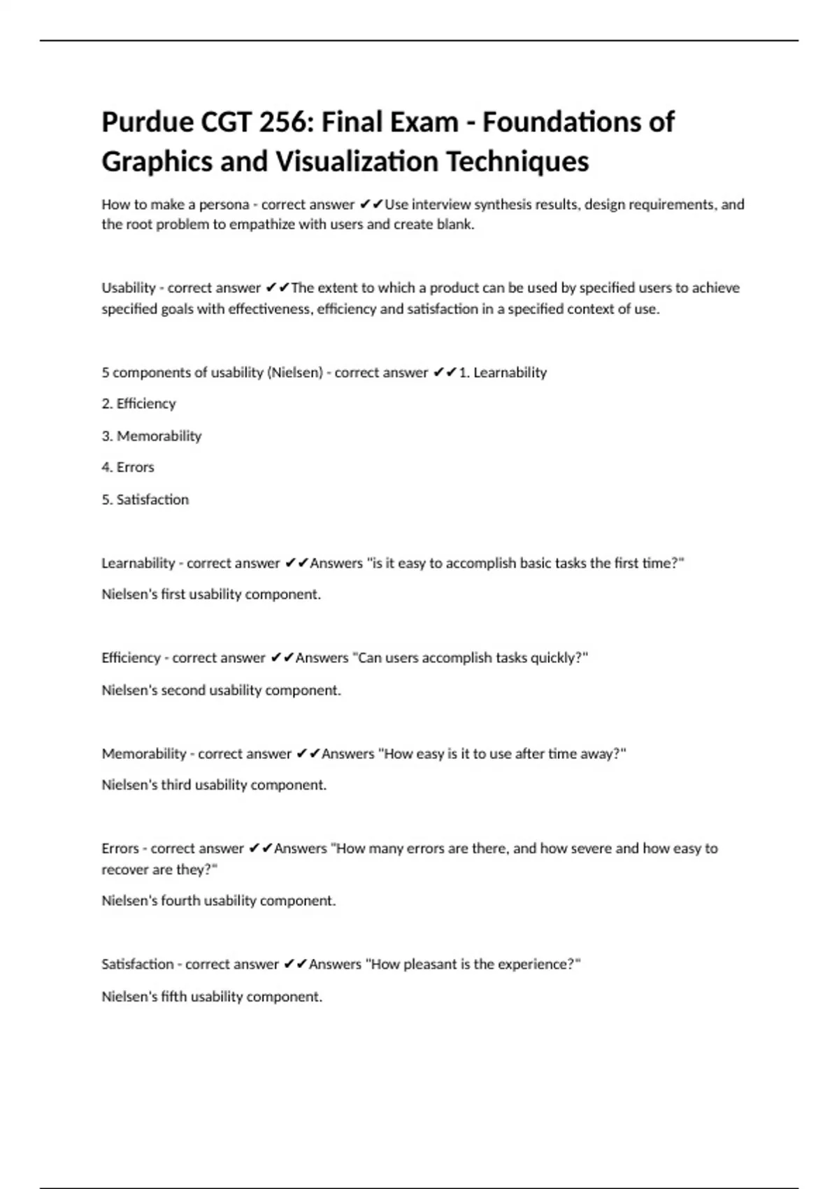 5 components of usability (Nielsen) - correct answer ✔✔1. Learnability