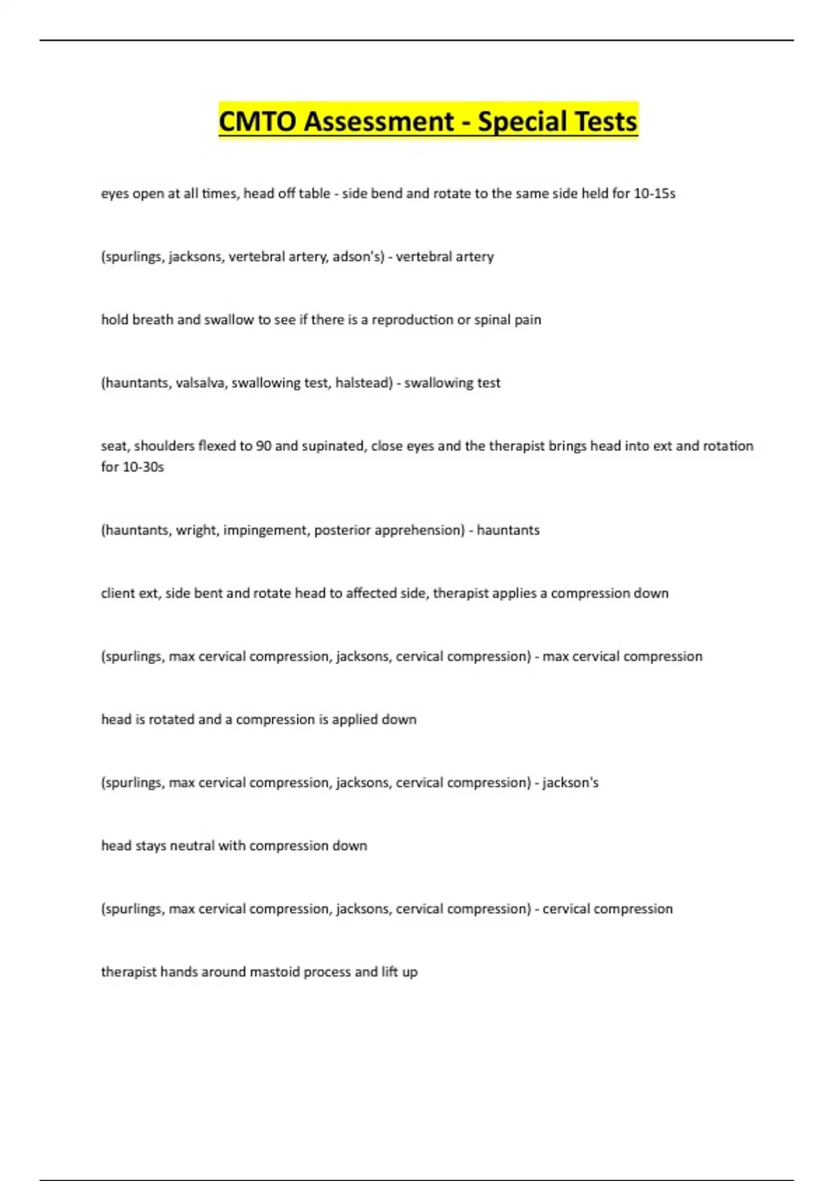 (spurlings, max cervical compression, jacksons, cervical compression) - cervical compression