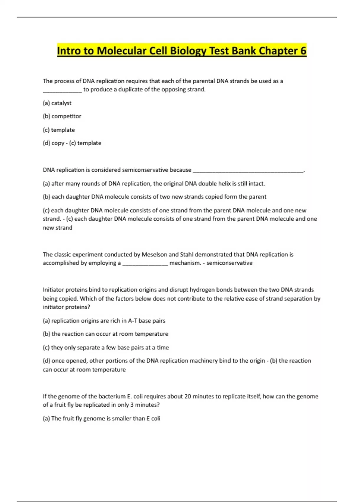 (d) Fruit fly DNA contains more origins of replica on than E coli DNA. - (d) Fruit fly DNA contains more