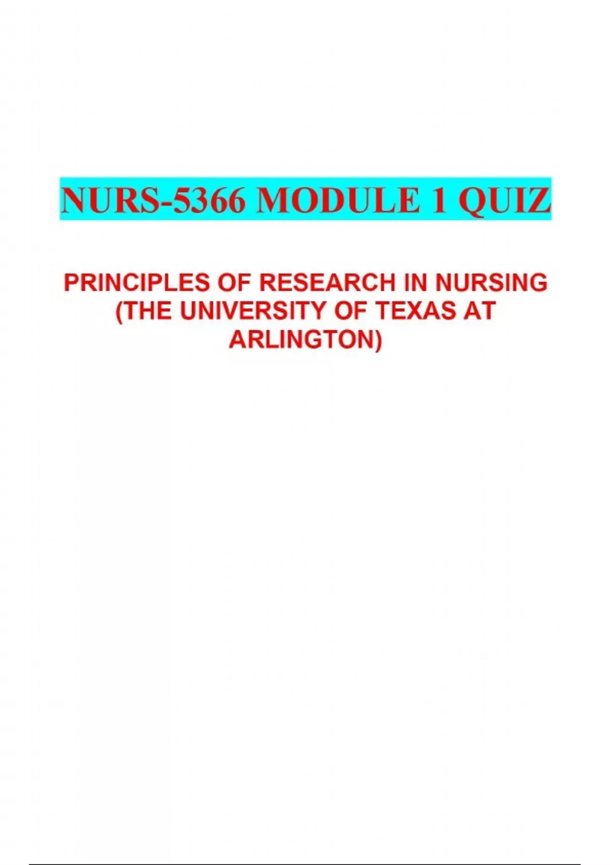 NURS-5366 MODULE 1 QUIZ UNIVERSITY OF TEXAS AT ARLINGTON