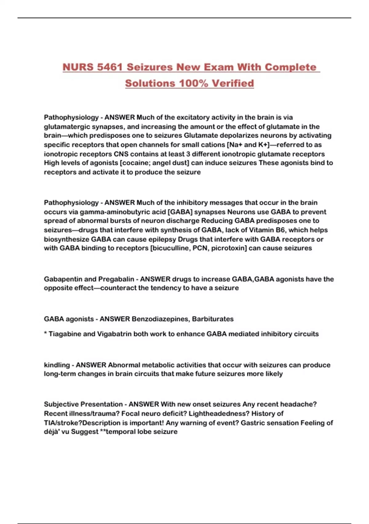 NURS 5461 Seizures New Exam With Complete