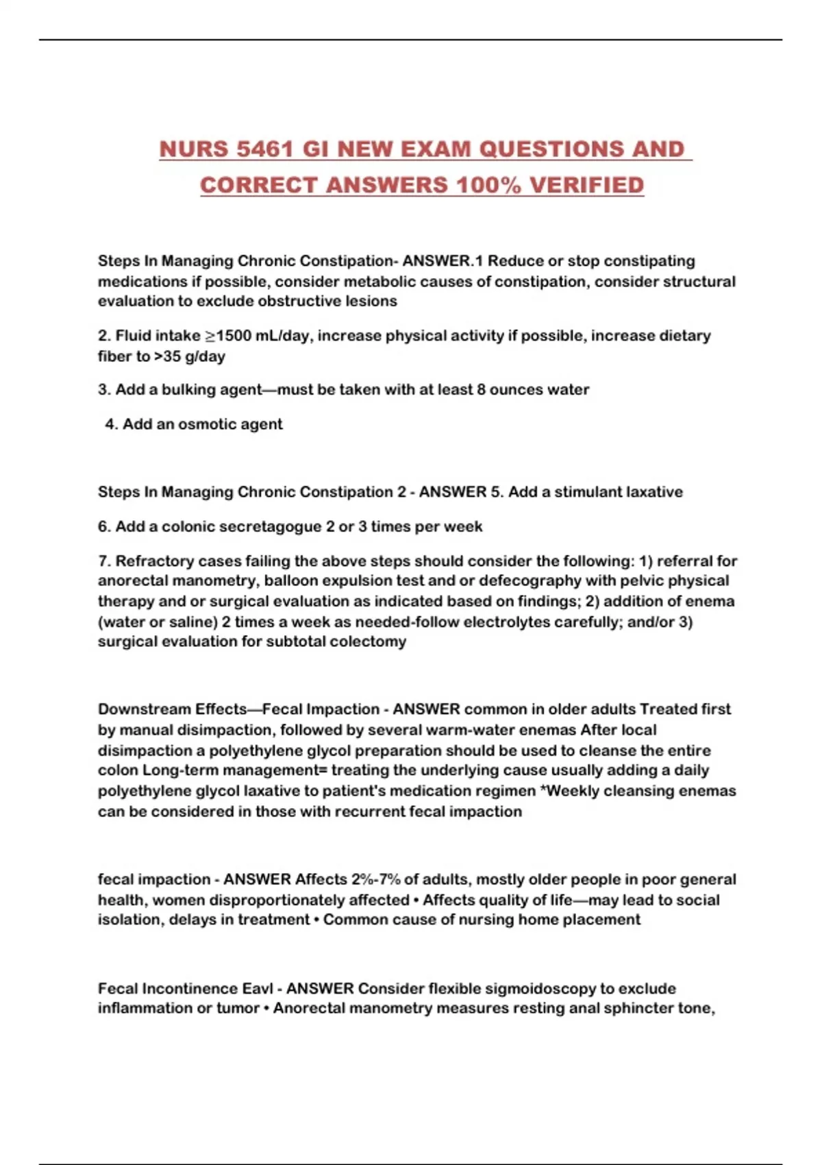 NURS 5461 GI NEW EXAM QUESTIONS AND