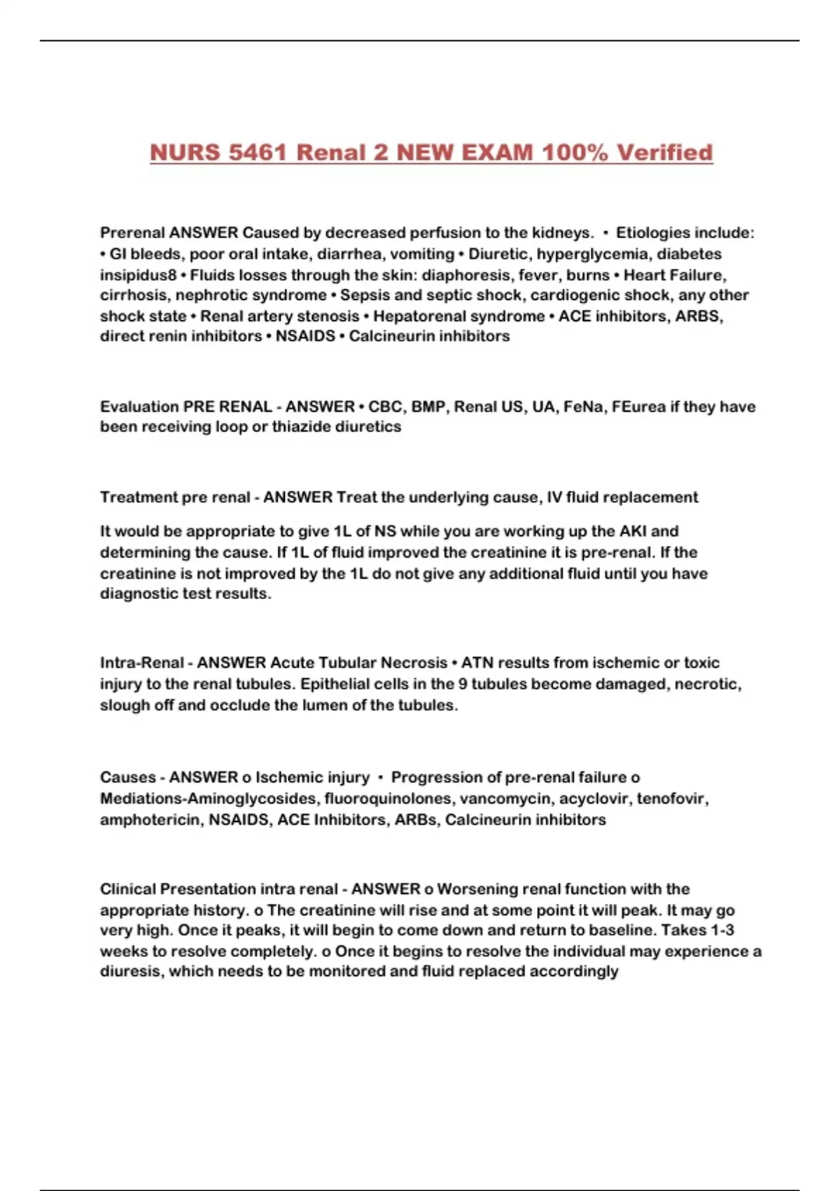 NURS 5461 Renal 2 NEW EXAM 100% Verified...
