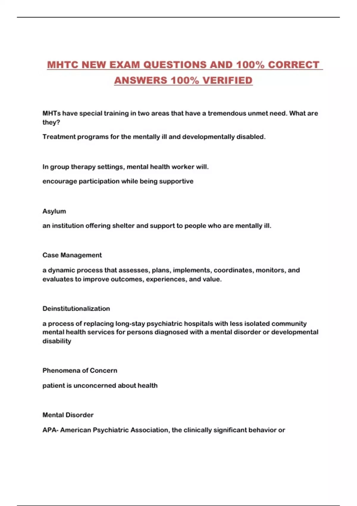MHTC NEW EXAM QUESTIONS AND 100% CORRECT