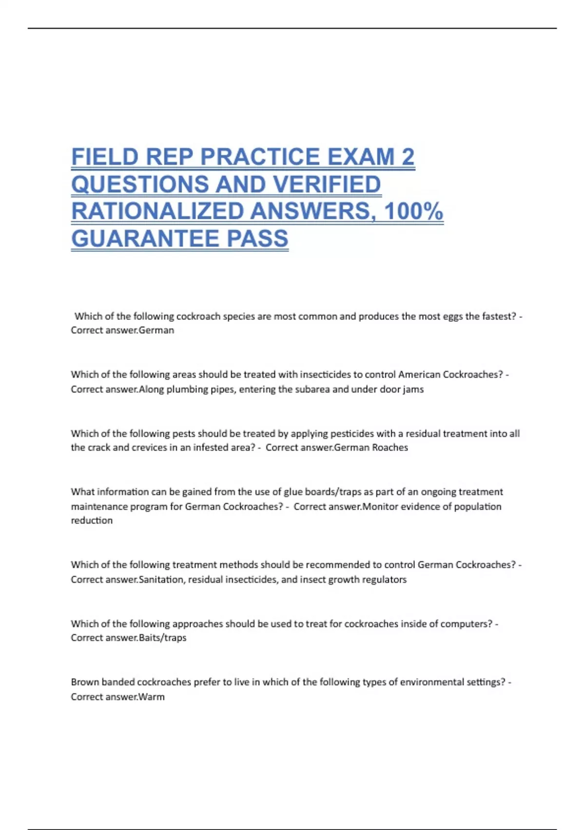 FIELD REP PRACTICE EXAM 2