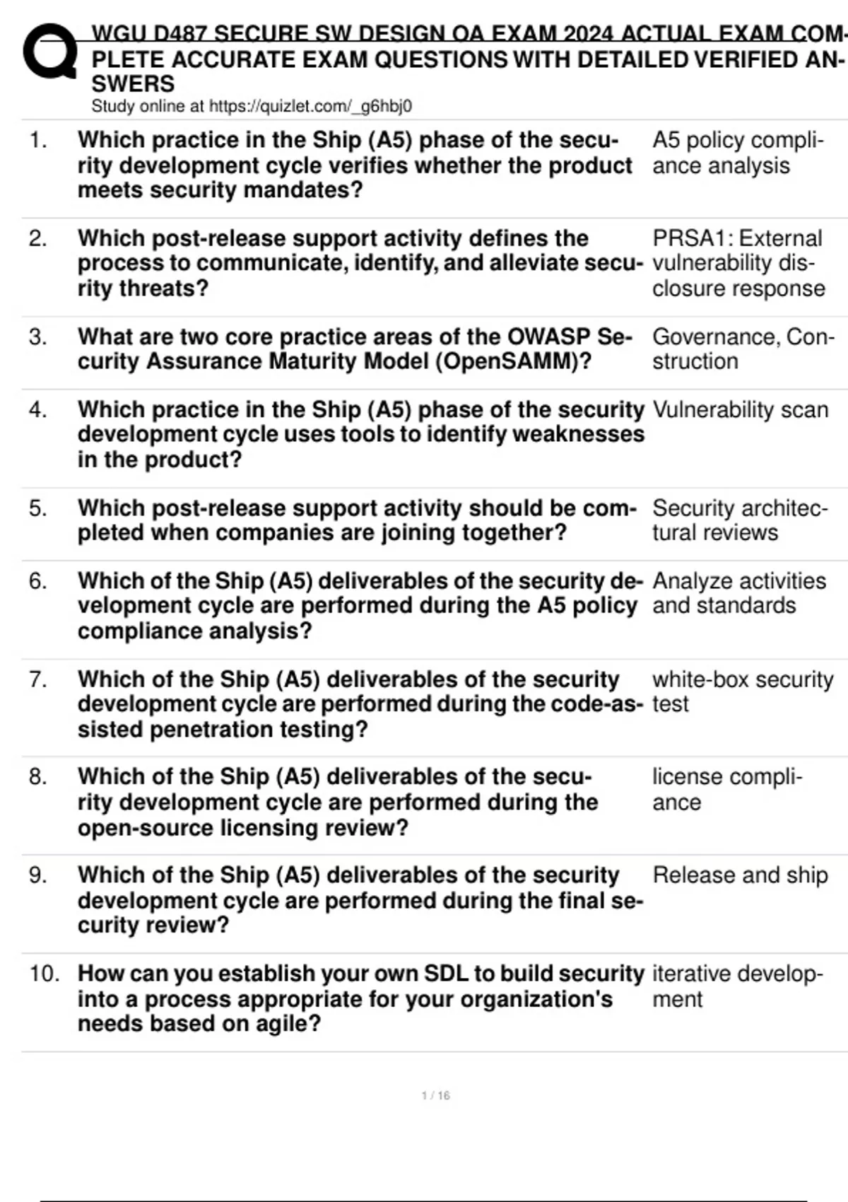1. Which practice in the Ship (A5) phase of the secu- A5 policy compli-