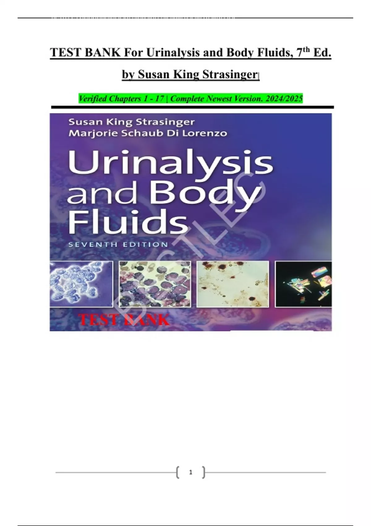 TEST BANK For Urinalysis and Body Fluids, 7th Ed.