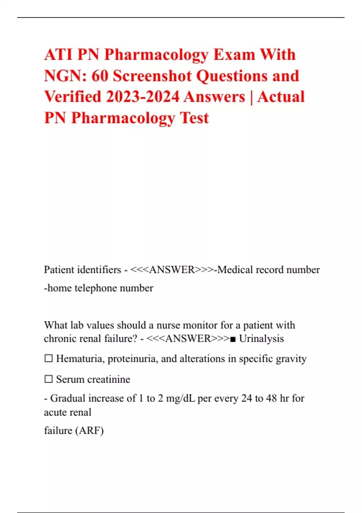 ATI PN Pharmacology Exam With NGN: 60 Screenshot Questions and Verified Answers | Actual PN Pharmacology Test