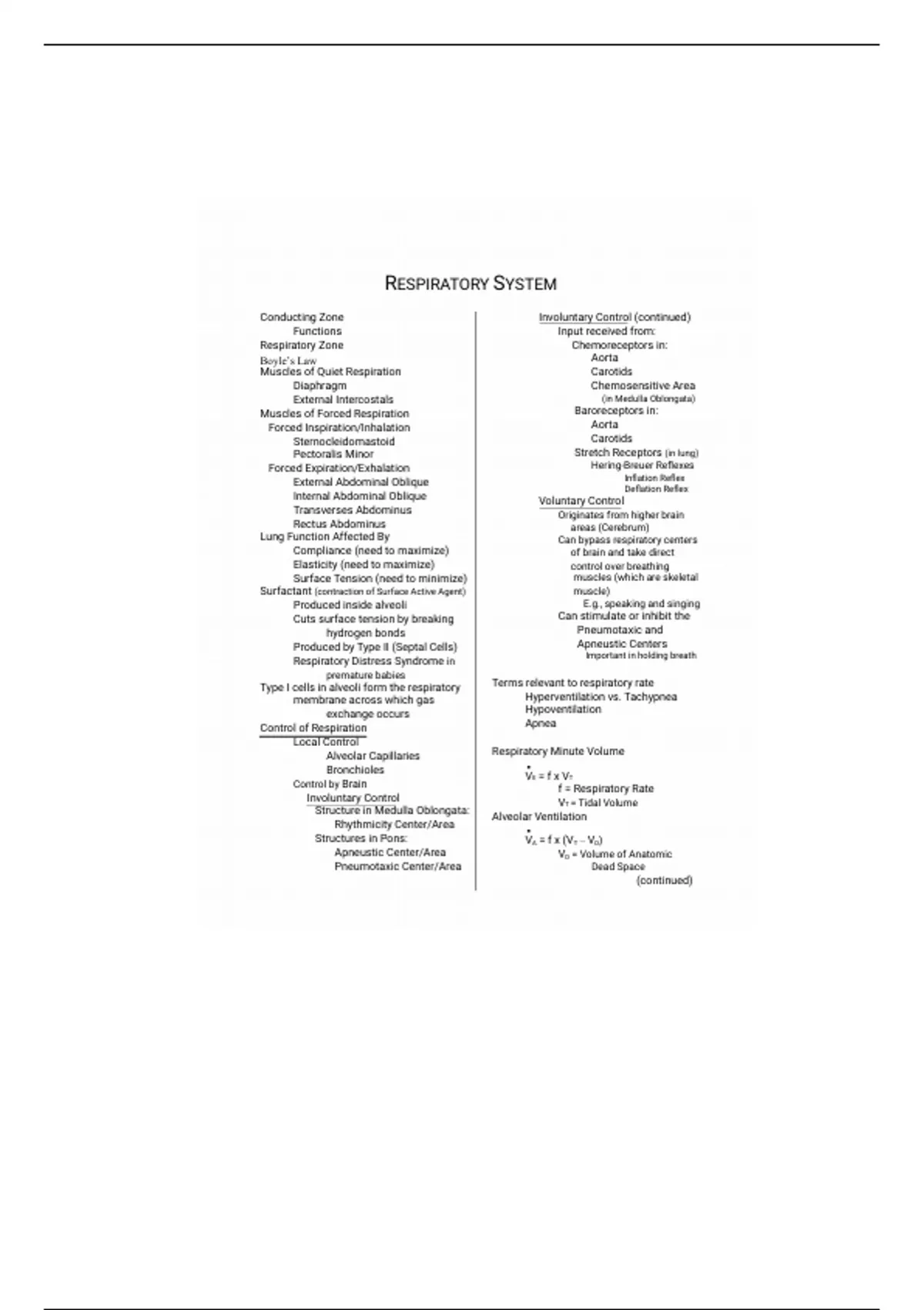 Pneumotaxic Center/Area Dead Space