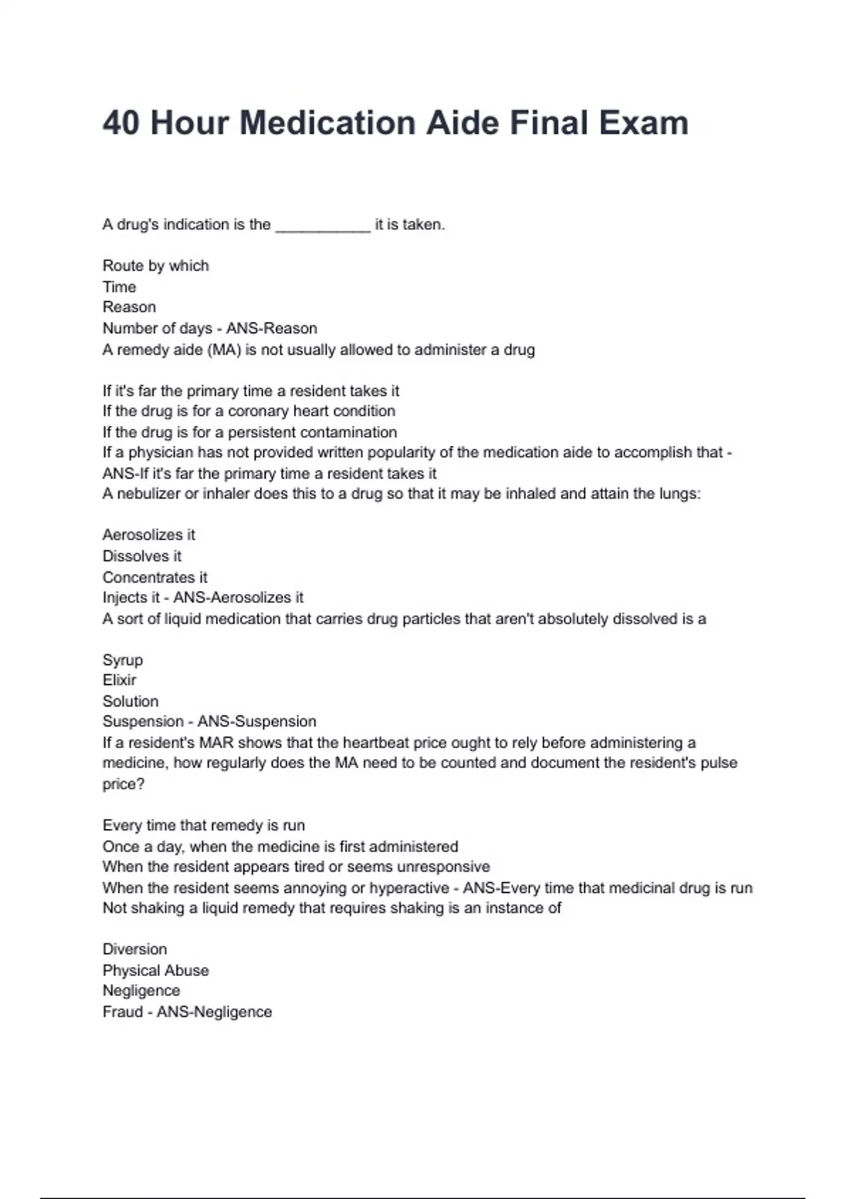 when. - ANS-The nurse is shifting duty to the medication aide to carry out the particular mission