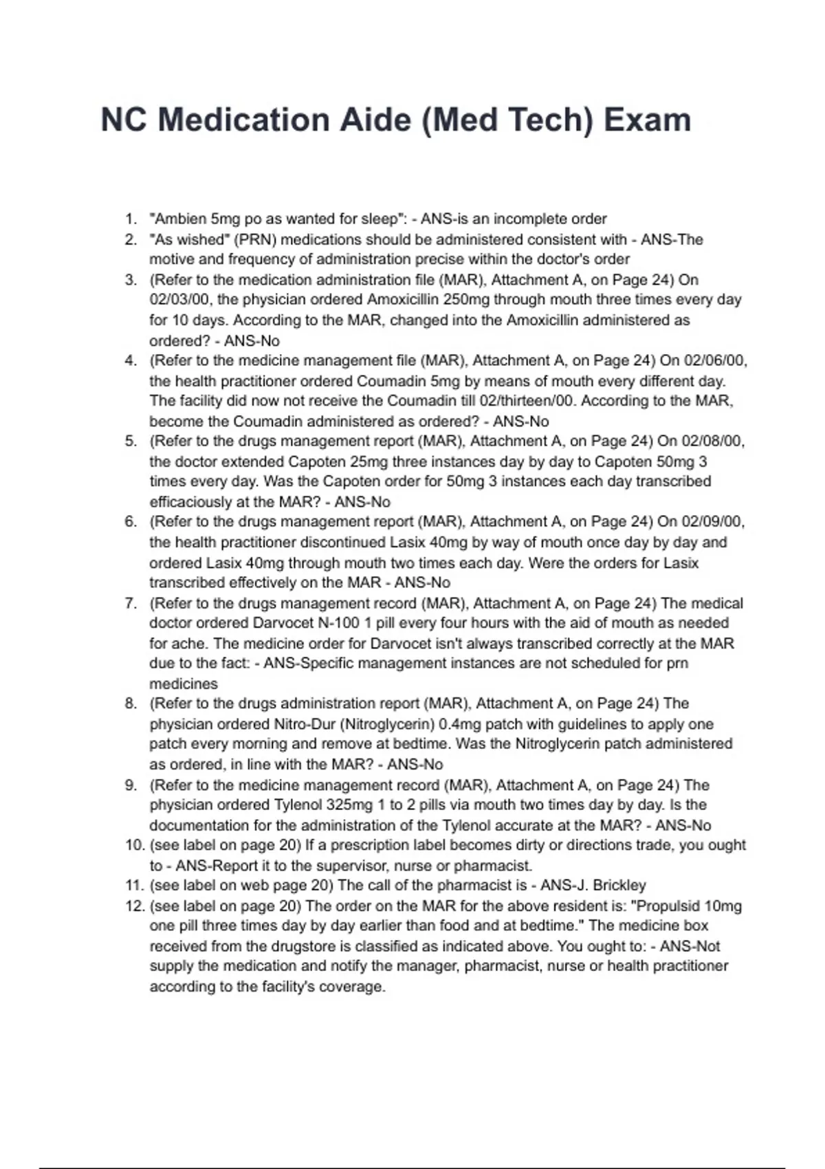 7. (Refer to the drugs management record (MAR), Attachment A, on Page 24) The medical