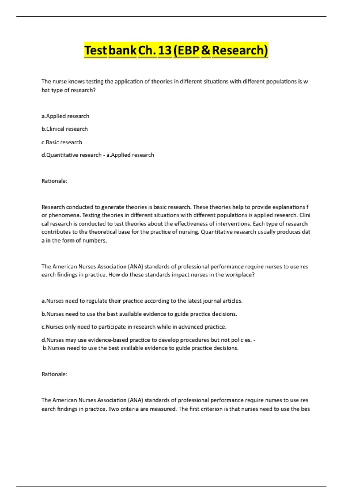 b.Nurses need to use the best available evidence to guide prac ce decisions.