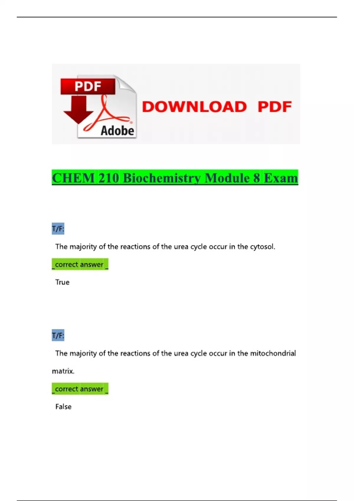 CHEM 210 Biochemistry Module 8 Exam (2025 / 2026) Portage Learning Questions and Verified Answers, 100% Guarantee Pass CHEM 210 Biochemistry Module 8 Exam (2025 / 2026) Portage Learning Questions and Verified Answers, 100% Guarantee Pass