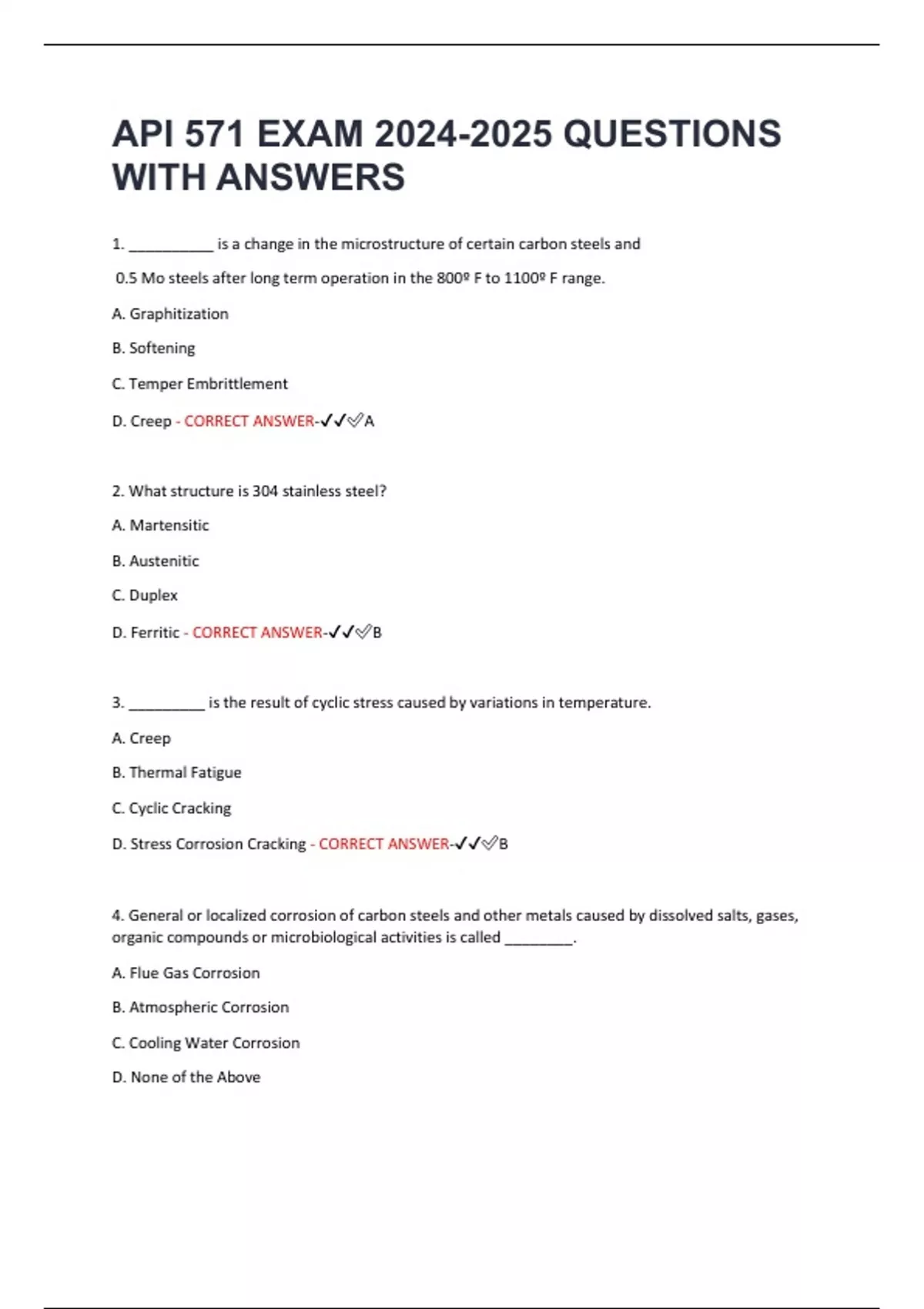 D. Stress Corrosion Cracking - CORRECT ANSWER-✔✔✅B